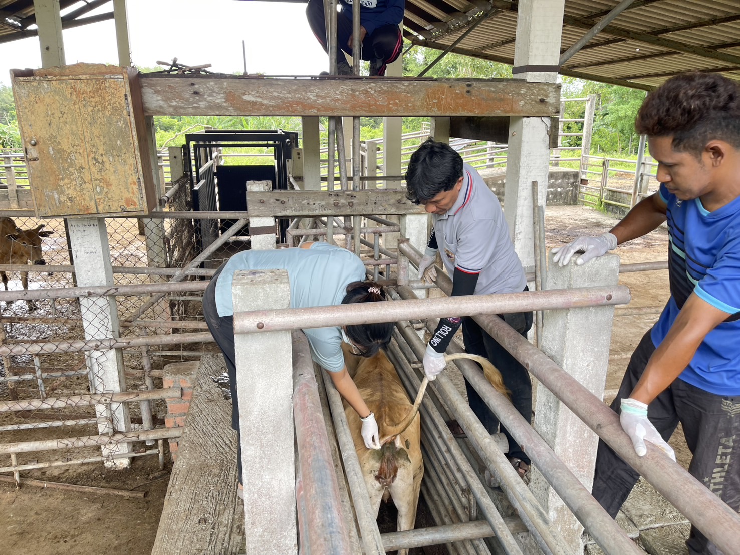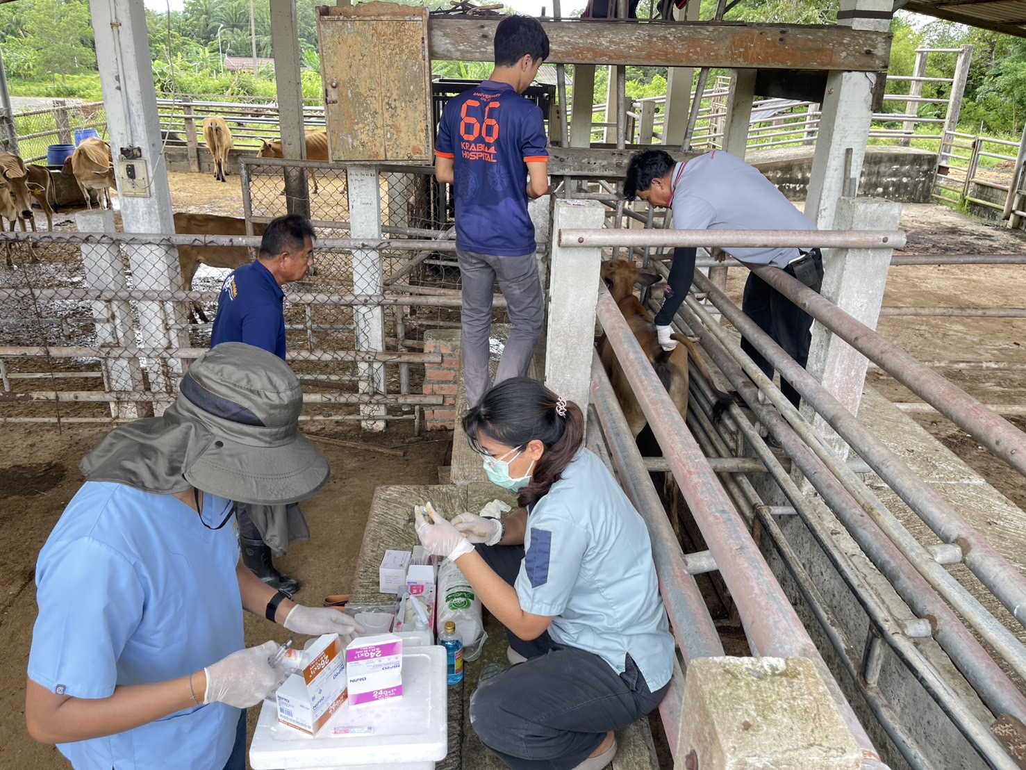 นายสัตวแพทย์สมพร เอ่งฉ้วน ปศุสัตว์จังหวัดกระบี่ มอบหมายให้ นายประสิทธิ์ ขำเผือก นายสัตวแพทย์ปฏิบัติการ พร้อมด้วยเจ้าหน้าที่กลุ่มพัฒนาสุขภาพสัตว์ และเจ้าหน้าที่ปศุสัตว์อำเภอเมืองกระบี่ ร่วมกับศูนย์วิจัยและบำรุงพันธุ์สัตว์กระบี่ เภอเมืองกระบี่ ดำเนินงานตามโครงการตรวจทดสอบโรควัณโรคในโค ประจำปีงบประมาณ พ.ศ. 2568 ซึ่งได้ทำการทดสอบวัณโรคทางผิวหนังที่โคนหางของโคเนื้อ จำนวน 80 ตัว ณ ศูนย์วิจัยและบำรุงพันธุ์กระบี่ ต.กระบี่น้อย อ.เมืองกระบี่ จ.กระบี่