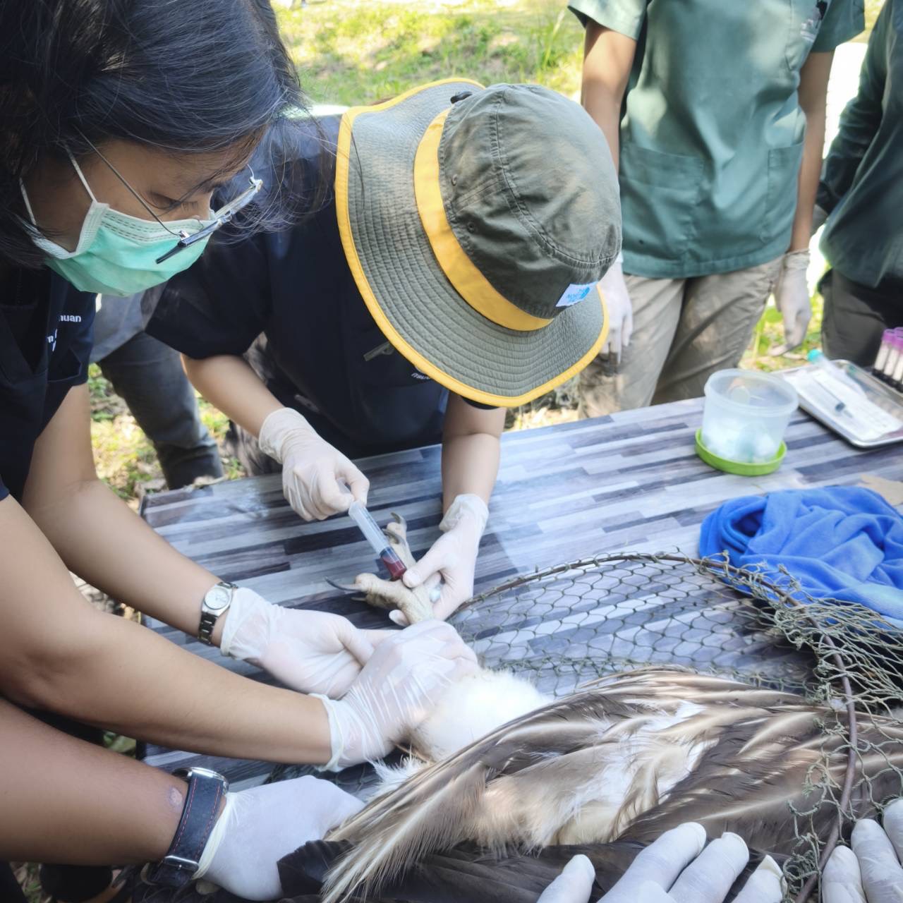วันที่ 2-3 กุมภาพันธ์ 2569 ส่วนสุขภาพสัตว์ สำนักงานปศุสัตว์เขต 8 นำโดย สพ.ญ. มินตา สุวรรณบูรณ์ ตำแหน่ง นายสัตวแพทย์ชำนาญการ และ สพ.ญ.กมลศรี บุตรทอง ตำแหน่ง นายสัตวแพทย์ชำนาญการ นิเทศงานด้านการเฝ้าระวังและควบคุมโรคในสัตว์ปีก ให้แก่เจ้าหน้าที่ กลุ่มพัฒนาสุขภาพสัตว์ สำนักงานปศุสัตว์จังหวัดพังงา เพื่อเป็นการทบทวนหลักการเก็บตัวอย่างและลงข้อมูลในระบบเฝ้าระวัง และร่วมกับเจ้าหน้าที่ จากสำนักบริหารพื้นที่อนุรักษ์ที่ 4 (จังหวัดสุราษฎร์ธานี) และสำนักบริหารพื้นที่อนุรักษ์ที่ 5 (จังหวัดนครศรีธรรมราช) เก็บตัวอย่างเลือดและ cloacal swab ในนกแร้งหิมาลัยสีน้ำตาล ซึ่งเป็นนกอพยพ ณ สถานีเพาะเลี้ยงสัตว์ป่าพังงา จังหวัดพังงา เพื่อเป็นการตรวจสุขภาพและตรวจหาโรคไข้หวัดนก ก่อนการเคลื่อนย้ายเพื่อไปปล่อยสู่ธรรมชาติ