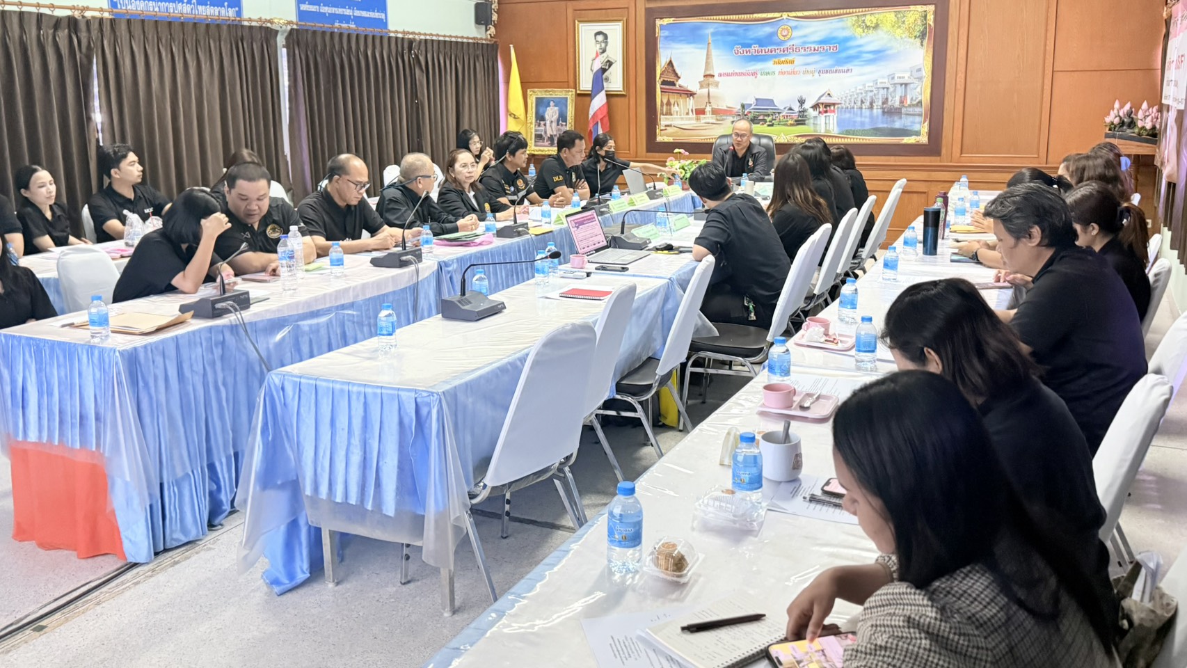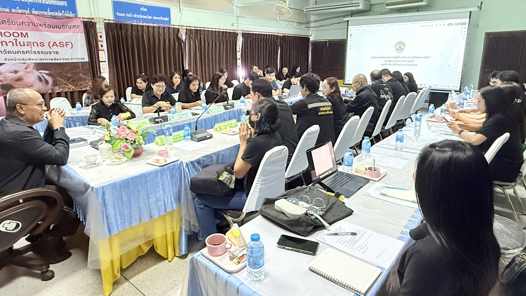 วันที่ 6 กุมภาพันธ์ 2569 นายสัตวแพทย์ธนวัฒน์ พันธุ์สนิท ปศุสัตว์เขต 8 ในฐานะผู้ตรวจราชการกรมปศุสัตว์ ประชุมติดตามผลการปฎิบัติงานโครงการสำคัญของกรมปศุสัตว์ของผู้ตรวจราชการกรมปศุสัตว์ รอบที่ 1 ประจำปีงบประมาณ พ.ศ.2569 เพื่อติดตามความก้าวหน้าผลการดำเนินงานโครงการสำคัญของกรมปศุสัตว์ ตลอดจนปัญหา อุปสรรค ข้อเสนอแนะจากการปฎิบัติงาน โดยมี นางนวรัตน์ ศรีชูสุข รักษาราชการแทน ปศุสัตว์จังหวัดนครศรีธรรมราช หัวหน้ากลุ่มฯ ฝ่ายฯ ปศุสัตว์อำเภอ และหน่วยงานกรมปศุสัตว์ในจังหวัดนครศรีธรรมราช ได้แก่ ผู้อำนวยการศูนย์วิจัยและพัฒนาการสัตวแพทย์ภาคใต้ตอนบน หัวหน้าด่านกักกันสัตว์นครศรีธรรมราช ผู้อำนวยการศูนย์วิจัยและพัฒนาอาหารสัตว์นครศรีธรรมราช ผู้อำนวยการศูนย์วิจัยและบำรุงพันธุ์สัตว์นครศรีธรรมราช เข้าประชุม ณ ห้องประชุมสำนักงานปศุสัตว์จังหวัดนครศรีธรรมราช อำเภอเมือง จังหวัดนครศรีธรรมราช