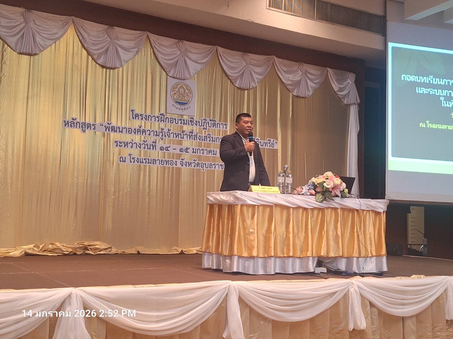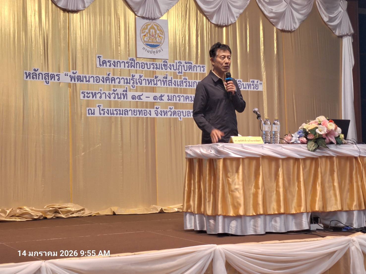 วันที่ 14-15 มกราคม 2569 เจ้าหน้าที่ส่วนส่งเสริมและพัฒนาการปศุสัตว์ สำนักงานปศุสัตว์เขต 8 เข้าร่วมโครงการฝึกอบรมเชิงปฏิบัติการ หลักสูตร พัฒนาองค์ความรู้เจ้าหน้าที่ส่งเสริมการทำปศุสัตว์อินทรีย์ ณ โรงแรมลายทอง จังหวัดอุบลราชธานี โดยมีเจ้าหน้าที่ปศุสัตว์เข้าร่วมการฝึกอบรมฯ จำนวน 100 ราย