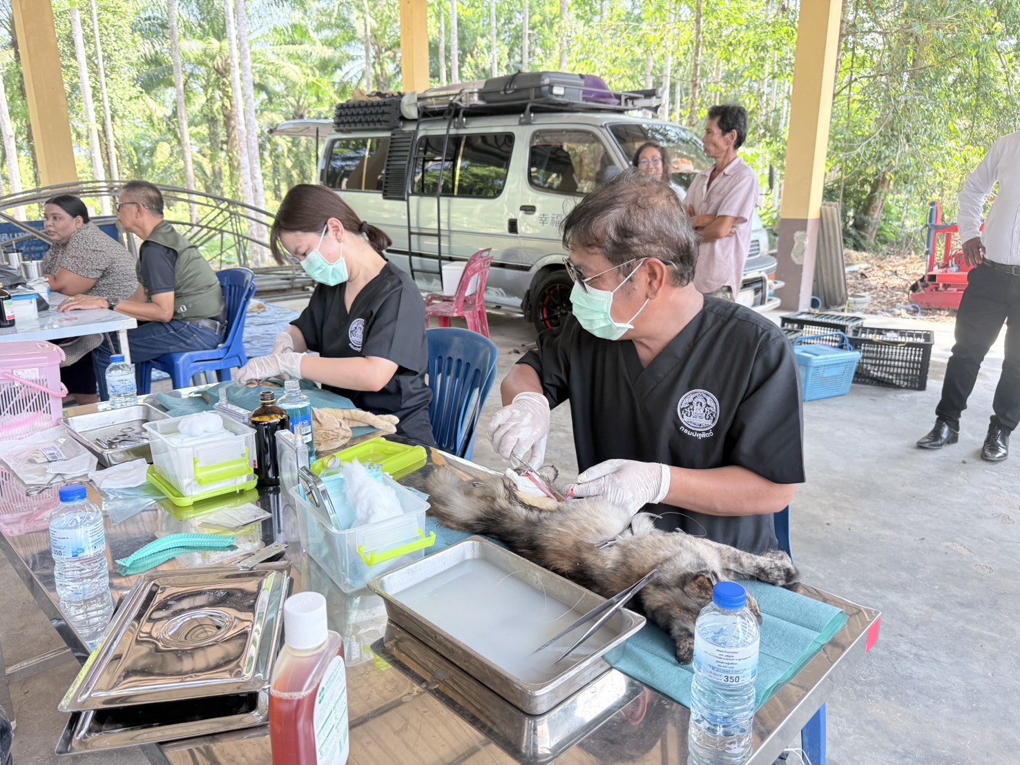 ในการออกหน่วย เจ้าหน้าที่ปศุสัตว์ได้ให้บริการผ่าตัดทำหมันและฉีดวัคซีนป้องกันโรคพิษสุนัขบ้าให้สุนัขและแมวของประชาชนผู้ร่วมงานในโครงการฯ โดยได้ให้บริการผ่าตัดทำหมันและฉีดวัคซีนสุนัข 10 ตัว และแมว 45 ตัว รวม 55 ตัว
