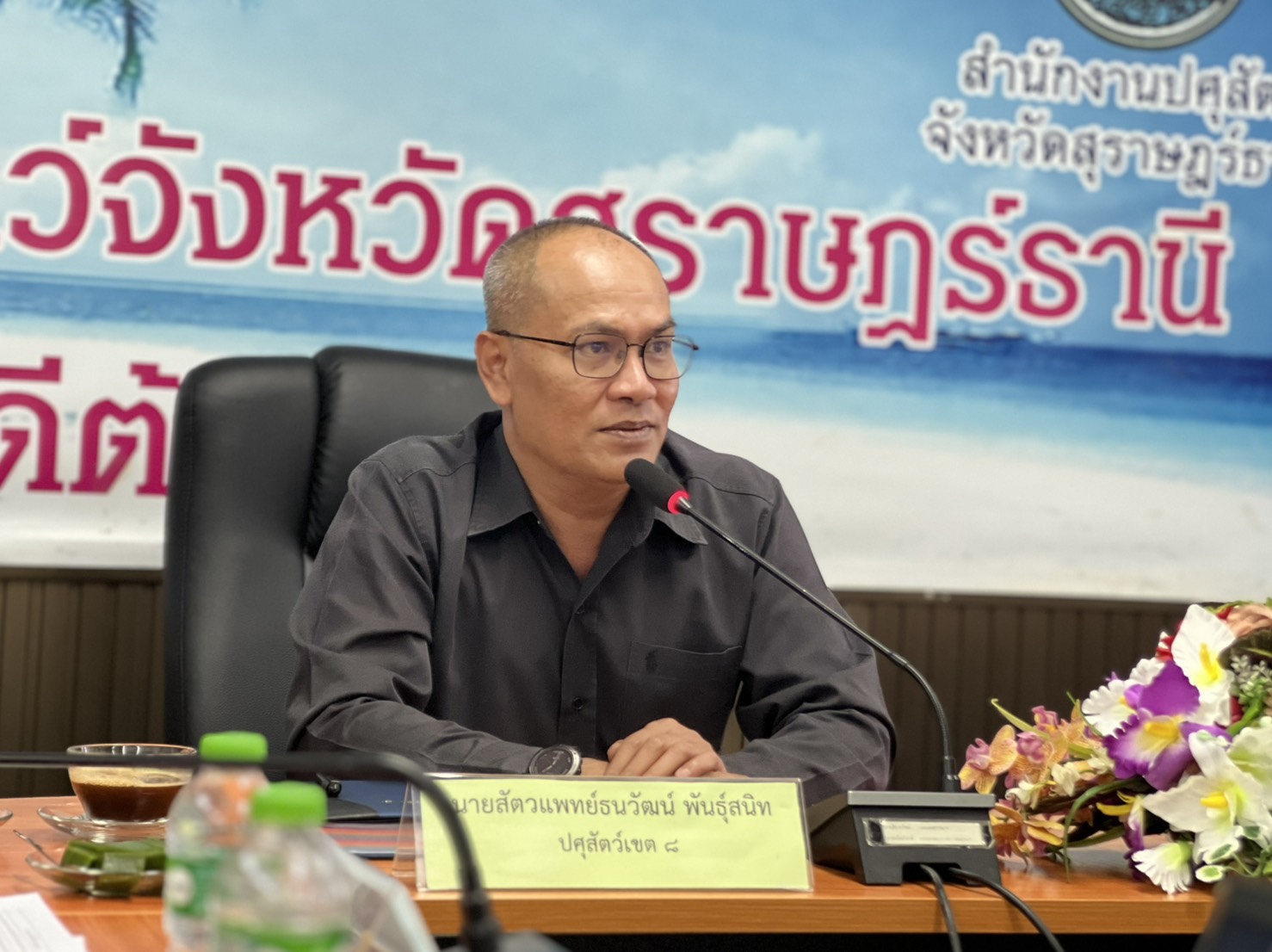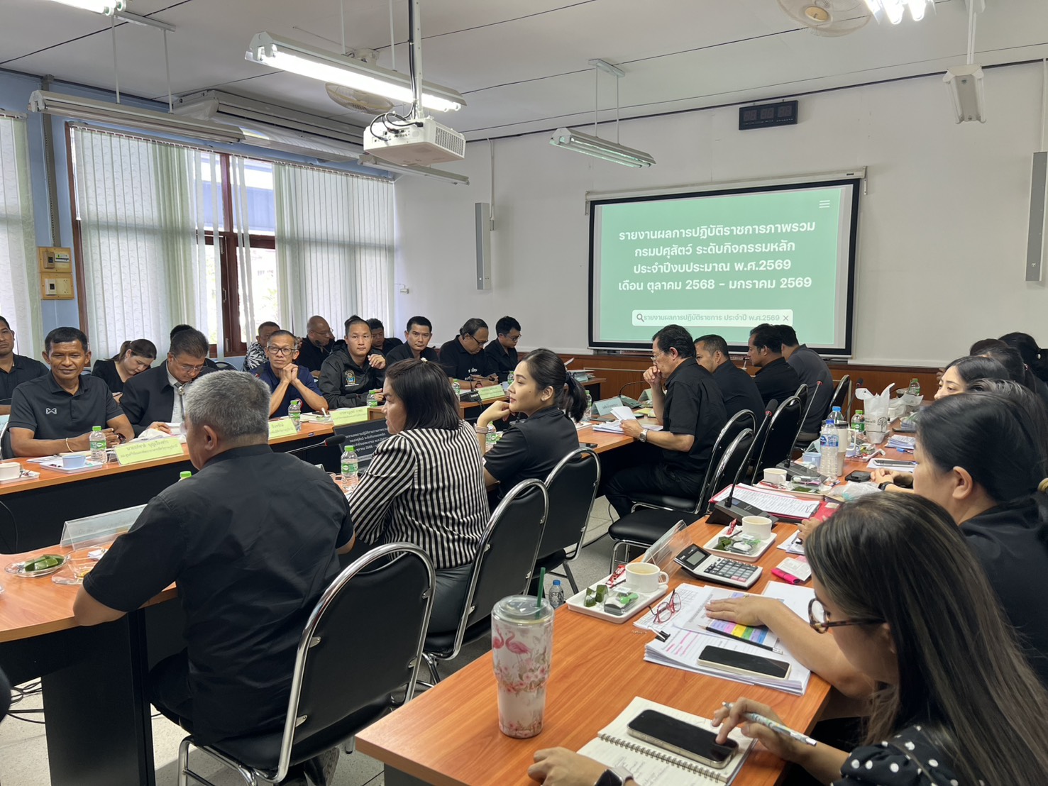 วันที่ 30 มกราคม 2569 นายสัตวแพทย์ธนวัฒน์ พันธุ์สนิท ปศุสัตว์เขต 8 ในฐานะผู้ตรวจราชการกรมปศุสัตว์ และคณะ ประชุมติดตามผลการปฎิบัติงานโครงการสำคัญของกรมปศุสัตว์ของผู้ตรวจราชการกรมปศุสัตว์ รอบที่ 1 ประจำปีงบประมาณ พ.ศ.2569 เพื่อติดตามความก้าวหน้าผลการดำเนินงานโครงการสำคัญของกรมปศุสัตว์ ตลอดจนปัญหา อุปสรรค ข้อเสนอแนะจากการปฎิบัติงาน โดยมีนายสมพล ไวปัญญา ปศุสัตว์จังหวัดสุราษฎร์ธานี หัวหน้ากลุ่มฯ ฝ่ายฯ ปศุสัตว์อำเภอ และหน่วยงานกรมปศุสัตว์ในจังหวัดสุราษฎร์ธานี ได้แก่ ผู้อำนวยการศูนย์วิจัยและพัฒนาอาหารสัตว์สุราษฎร์ธานี ผู้อำนวยการศูนย์วิจัยและบำรุงพันธุ์สัตว์สุราษฎร์ธานี ผู้อำนวยการศูนย์วิจัยการผสมเทียมและเทคโนโลยีชีวภาพสุราษฎร์ธานี หัวหน้าด่านกักกันสัตว์ชุมพร หัวหน้าด่านกักกันสัตว์ท่าอากาศยานนานาชาติสมุย เข้าประชุม ณ ห้องประชุมสำนักงานปศุสัตว์จังหวัดสุราษฎร์ธานี อำเภอเมือง จังหวัดสุราษฎร์ธานี