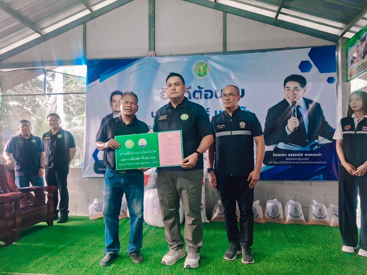 วันที่ 6 ธันวาคม 2568 น.สพ.ธนวัฒน์ พันธุ์สนิท ปศุสัตว์เขต 8 และเจ้าหน้าที่ปศุสัตว์ในพื้นที่ จังหวัดกระบี่ ร่วมให้การต้อนรับ นายอามินทร์ มะยูโซ๊ะ รัฐมนตรีช่วยว่าการกระทรวงเกษตรและสหกรณ์ และคณะ ลงพื้นที่ปฏิบัติราชการ มอบใบรับรองมาตรฐานฮาลาล โรงเชือด ใบรับรองฟาร์มGFM เสบียงอาหารสัตว์ ถุงยังชีพ เวชภัณฑ์ แก่เกษตรกร พร้อมพบปะ รับฟังปัญหาและความต้องการของเกษตรกรกลุ่มแพะบ้านไร่ใหญ่ เพื่อหาแนวทางช่วยเหลือเกษตรกร ณ ที่ทำการกลุ่มแพะบ้านไร่ใหญ่ ตำบลเหนือคลอง อำเภอเหนือคลอง จังหวัดกระบี่