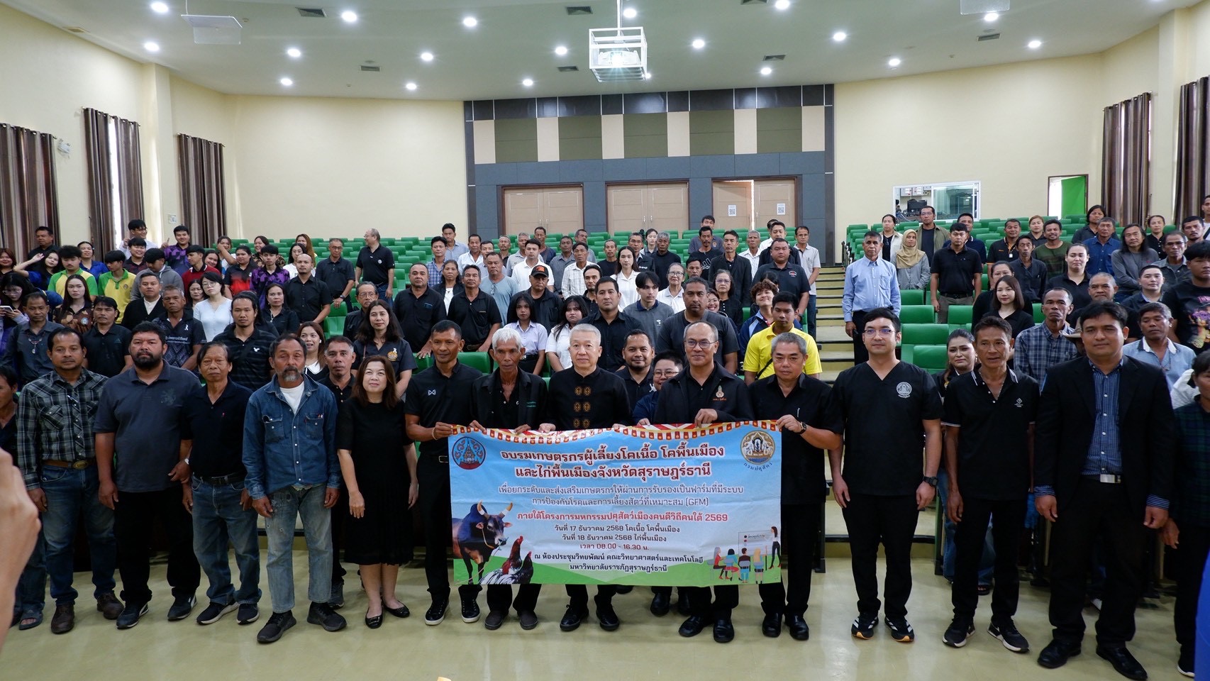 วันที่ 17 ธ.ค. 2568 ส่วนสุขภาพสัตว์ สำนักงานปศุสัตว์เขต 8 ร่วมเป็นวิทยากรบรรยายเรื่อง “โรคที่สำคัญในโคเนื้อ โคพื้นเมือง และการสุขาภิบาลเบื้องต้น” และ วิทยากรบรรยายเรื่อง “หลักเกณฑ์ของฟาร์มที่มีระบบการป้องกันโรคและการเลี้ยงสัตว์ที่เหมาะสม” ให้กับเกษตรกรผู้เลี้ยงโคเนื้อ โคพื้นเมือง จังหวัดสุราษฎร์ธานี จำนวน 120 ราย เพื่อส่งเสริมให้เกษตรกรมีความรู้ด้านการจัดการฟาร์มและการเลี้ยงสัตว์ที่เหมาะสมเพื่อนำไปใช้ในการปรับปรุงพัฒนาฟาร์มของตนเอง ณ ห้องประชุมวิทยพัฒน์ มหาวิทยาลัยราชภัฏสุราษฎร์ธานี จังหวัดสุราษฎร์ธานี