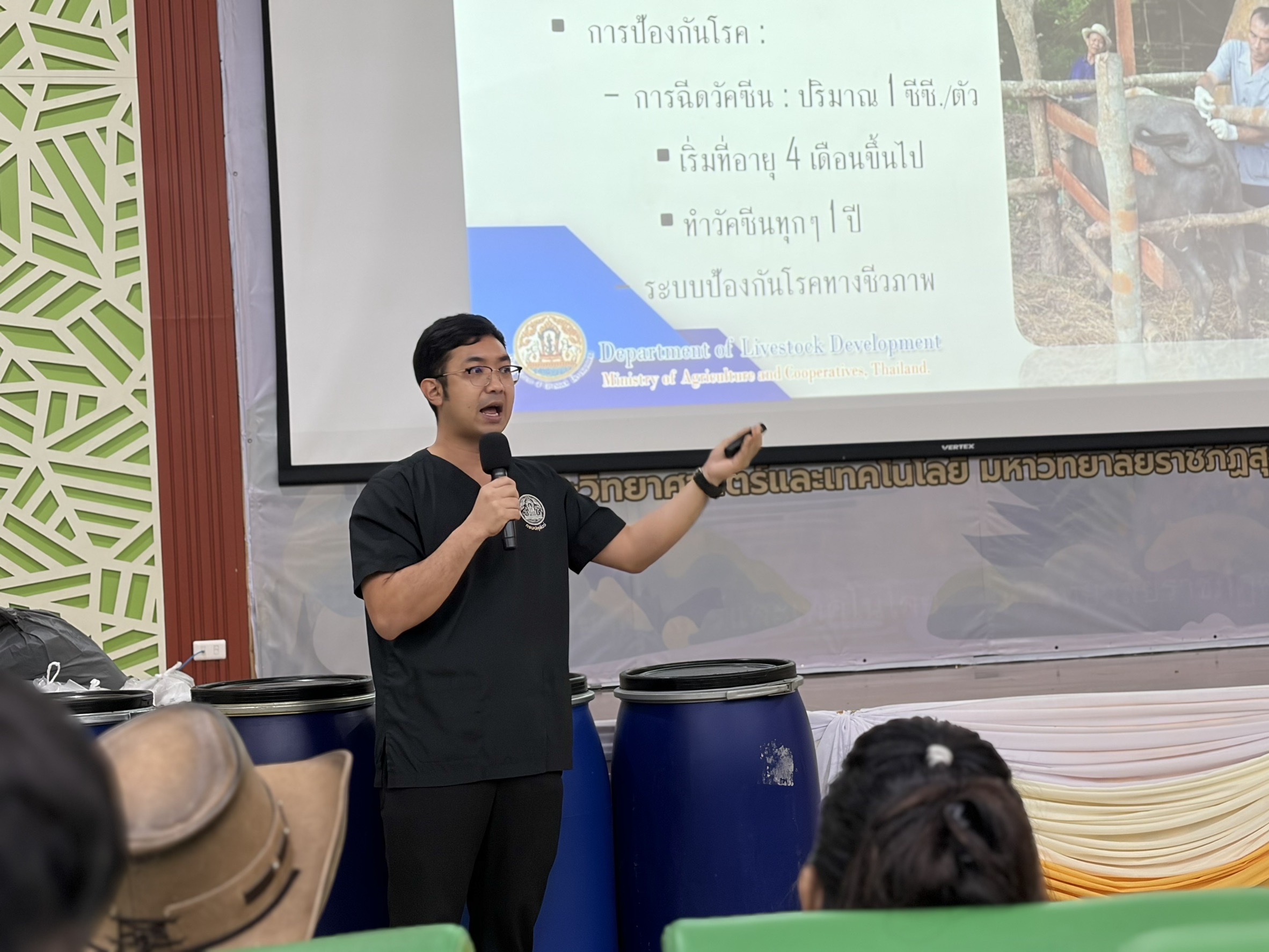 ร่วมเป็นวิทยากรบรรยายเรื่อง “โรคที่สำคัญในโคเนื้อ โคพื้นเมือง และการสุขาภิบาลเบื้องต้น” และ วิทยากรบรรยายเรื่อง “หลักเกณฑ์ของฟาร์มที่มีระบบการป้องกันโรคและการเลี้ยงสัตว์ที่เหมาะสม” ณ ห้องประชุมวิทยพัฒน์ มหาวิทยาลัยราชภัฏสุราษฎร์ธานี