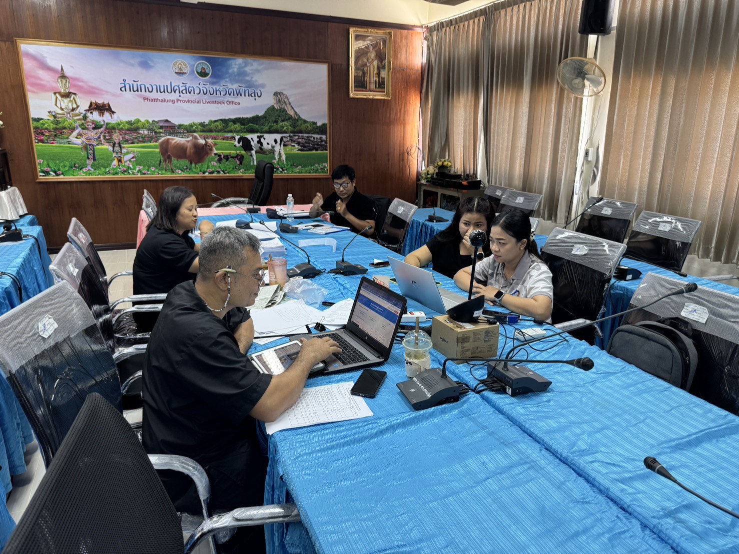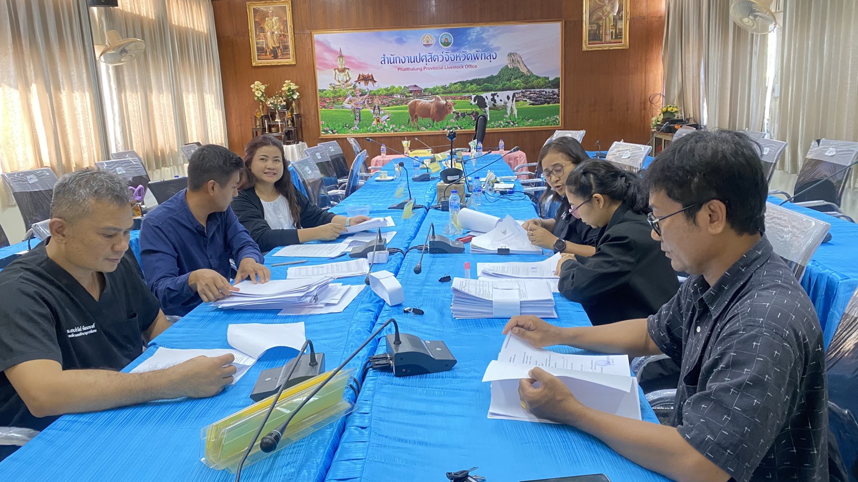 วันที่ 22 – 23 เมษายน 2569 ส่วนส่งเสริมและพัฒนาการปศุสัตว์ สำนักงานปศุสัตว์ นำโดย นายธรรมนาถ ชัยฤทธิ์ ผู้อำนวยการส่วนส่งเสริมและพัฒนาการปศุสัตว์ พร้อมด้วย นางสาววนิดา หมั่นถนอม นักวิชาการสัตวบาลชำนาญการ นางสาวกมลพรรณ ศรีปากแพรก เจ้าพนักงานสัตวบาลชำนาญงาน และ นายอนุพงศ์ ไพลอย นักวิชาการสัตวบาล ร่วมประชุมตรวจสอบคุณสมบัติและพิจารณาจัดสรรสิทธิและพื้นที่จำหน่ายนมโรงเรียน กลุ่ม 7 ณ ห้องประชุมสำนักงานปศุสัตว์จังหวัดพัทลุง จังหวัดพัทลุง โดยมีผู้ประกอบการผลิตภัณฑ์นมเข้าร่วมสมัคร จำนวน 4 แห่ง