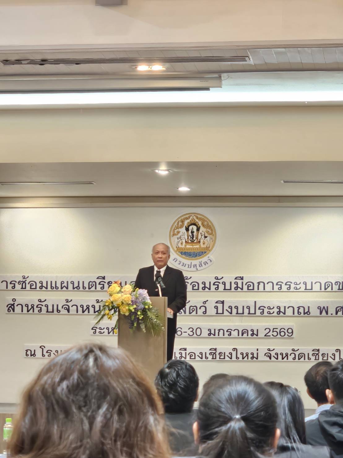 เจ้าหน้าที่สำนักงานปศุสัตว์อำเภอเมืองกระบี่ พร้อมด้วย นางสาวสายชล ดินแดง นักวิชาการสัตวบาล เจ้าหน้าที่สำนักงานปศุสัตว์อำเภอปลายพระยา เข้าร่วมฝึกอบรมโครงการซ้อมแผนเตรียมความพร้อมรับมือการระบาดของโรคไข้หวัดนกสำหรับเจ้าหน้าที่กรมปศุสัตว์ ประจำปีงบประมาณ พ.ศ.2569 ณ โรงแรมคุ้มภูคำ อำเภอเมืองเชียงใหม่ จังหวัดเชียงใหม่
