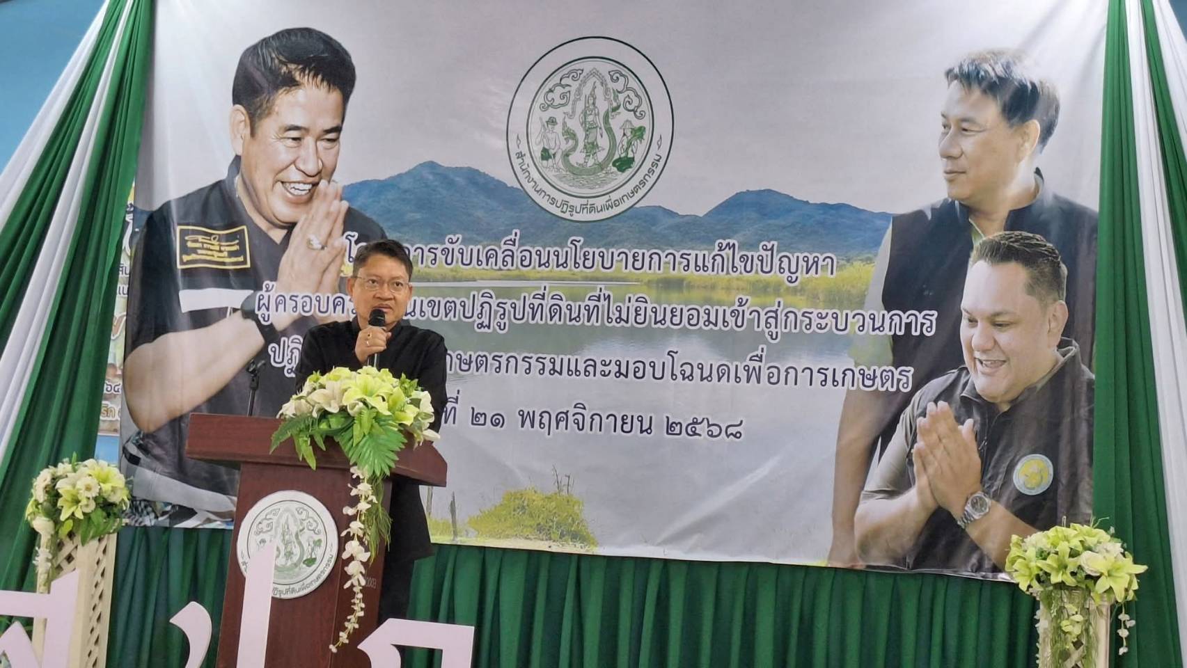 วันที่ 21 พฤศจิกายน 2568 เวลา 09.30 น. นายวิสูตร นวลขาว นายสัตวแพทย์ชำนาญการพิเศษ รักษาราชการแทน ปศุสัตว์จังหวัดกระบี่ มอบหมายให้นายวัชรินทร์ ปันนิตามัย หัวหน้ากลุ่มยุทธศาสตร์และสารสนเทศการปศุสัตว์ พร้อมด้วย เจ้าหน้าที่กลุ่มยุทธศาสตร์และสารสนเทศการปศุสัตว์ และเจ้าหน้าที่สำนักงานปศุสัตว์อำเภอเมืองกระบี่ เข้าร่วมกิจกรรม คิ๊กออฟ โครงการขับเคลื่อนนโยบายการแก้ไขปัญหาผู้ครอบครองในเขตปฏิรูปที่ดินที่ไม่ยินยอมเข้าสู่กระบวนการปฏิรูปที่ดินเพื่อเกษตรกรรม และมอบโฉนดเพื่อการเกษตรกรรม โดยมี นายอังกูร ศีลาเทวากูล ผู้ว่าราชการจังหวัดกระบี่ เป็นประธาน เปิดโครงการ ซึ่งสำนักงานปฏิรูปที่ดินจังหวัดกระบี่จัดขึ้น ณ แปลงที่ดินที่ปิดป้าย (Kick off) บ้านห้วยโต้ หมู่ที่ 4 ตําบลทับปริก อำเภอเมืองกระบี่ จังหวัดกระบี่ โดยมีวัตถุประสงค์เพื่อให้ผู้ครอบครองที่ดินในเขตปฏิรูปที่ดินที่ยังไม่เข้าสู่กระบวนการปฏิรูปที่ดินได้เข้าสู่กระบวนการปฏิรูปที่ดิน ตลอดจนการพิสูจน์สิทธิในที่ดินตามกฎหมายอื่น และดําเนินการนําที่ดินมาปฏิรูปที่ดินตามเจตนารมณ์ของการปฏิรูปที่ดินเพื่อเกษตรกรรม เพื่อให้กาคดำเนินงานแก้ไขปัญหาดังกล่าว บรรลุวัตถุประสงค์ สอดคล้องกับนโยบายของรัฐบาล และเจตนารมณ์ของการปฏิรูปที่ดินเพื่อเกษตรกรรม ส.ป.ก.จีงได้จัดกิจกรรมปิดป้ายประกาศแจ้งให้เข้าสู่กระบวนการปฏิรูปที่ดินเพื่อเกษตรกรรม เพื่อให้ผู้ครอบครองที่ดินยื่นค่าร้องแสดงสิทธิในที่ดินพร้อมกันทั่วประเทศทั้ง 28 จังหวัดในวันนี้ อันเป็นการประกาศเจตนารมณ์ในการแก้ไขปัญหาการครอบครองที่ดินโดยมิชอบด้วยกฎหมายอย่างจริงจังและปรับปรุงพัฒนาสิทธิในที่ดินรัฐ พร้อมทั้งเป็นการประชาสัมพันธ์และสร้างความเข้าใจให้กับสังคมเกี่ยวกับแนวทางปฏิบัติในการทวงคืนที่ดินกลับเข้าสู่กระบวนการปฏิรูปที่ดินเพื่อให้ได้ที่ดินในการนำไปจัดสรรให้กับเกษตรกรต่อไป