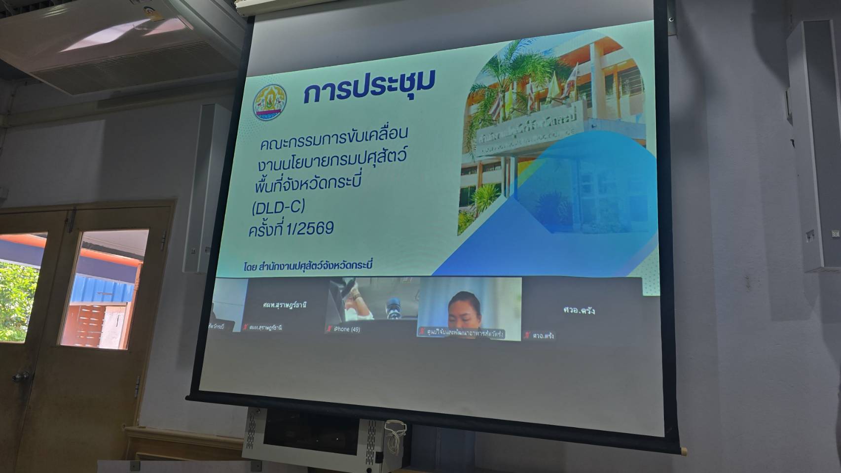 วันที่ 30 มกราคม เวลา 09.30 น. นายวิสูตร นวลขาว นายสัตวแพทย์ชำนาญการพิเศษ รักษาราชการแทน ปศุสัตว์จังหวัดกระบี่ และเจ้าหน้าที่สำนักงานปศุสัตว์จังหวัดกระบี่ พร้อมด้วยผู้อำนวยการศูนย์วิจัยการผสมเทียมและเทคโนโลยีชีวภาพสุราษฎร์ธานี หัวหน้าด่านกักกันสัตว์ตรัง เจ้าหน้าที่ศูนย์วิจัยและพัฒนาอาหารสัตว์ตรัง เจ้าหน้าที่ศูนย์วิจัยและพัฒนาสัตวแพทย์ภาคใต้ตอนบน เจ้าหน้าที่ศูนย์วิจัยและบำรุงพันธุ์สัตว์กระบี่ และเจ้าหน้าที่ศูนย์วิจัยการผสมเทียมและเทคโนโลยีชีวภาพสุราษฎร์ธานี ประชุมคณะกรรมการขับเคลื่อนนโยบายกรมปศุสัตว์ DLD Co-ordinator : DLD-C ระดับพื้นที่ จังหวัดกระบี่ ครั้งที่ 1/2569 ณ ห้องประชุมสำนักงานปศุสัตว์จังหวัดกระบี่ และประชุมผ่านสื่ออิเล็กทรอนิกส์ด้วยโปรแกรม Zoom Meeting เพื่อรับทราบนโยบายที่สำคัญของกรมปศุสัตว์ แผนงานและภารกิจของแต่ละหน่วยงาน ติดตามผลการดำเนินงานตามที่ได้รับนโยบายหรือข้อสั่งการเร่งด่วนจากจังหวัด กระทรวงเกษตรและสหกรณ์ หรือกรมปศุสัตว์ รวมไปถึงการขับเคลื่อนงานด้านปศุสัตว์ในพื้นที่จังหวัดกระบี่ โดยมี นายวิสูตร นวลขาว นายสัตวแพทย์ชำนาญการพิเศษ รักษาราชการแทน ปศุสัตว์จังหวัดกระบี่ เป็นประธานการประชุม