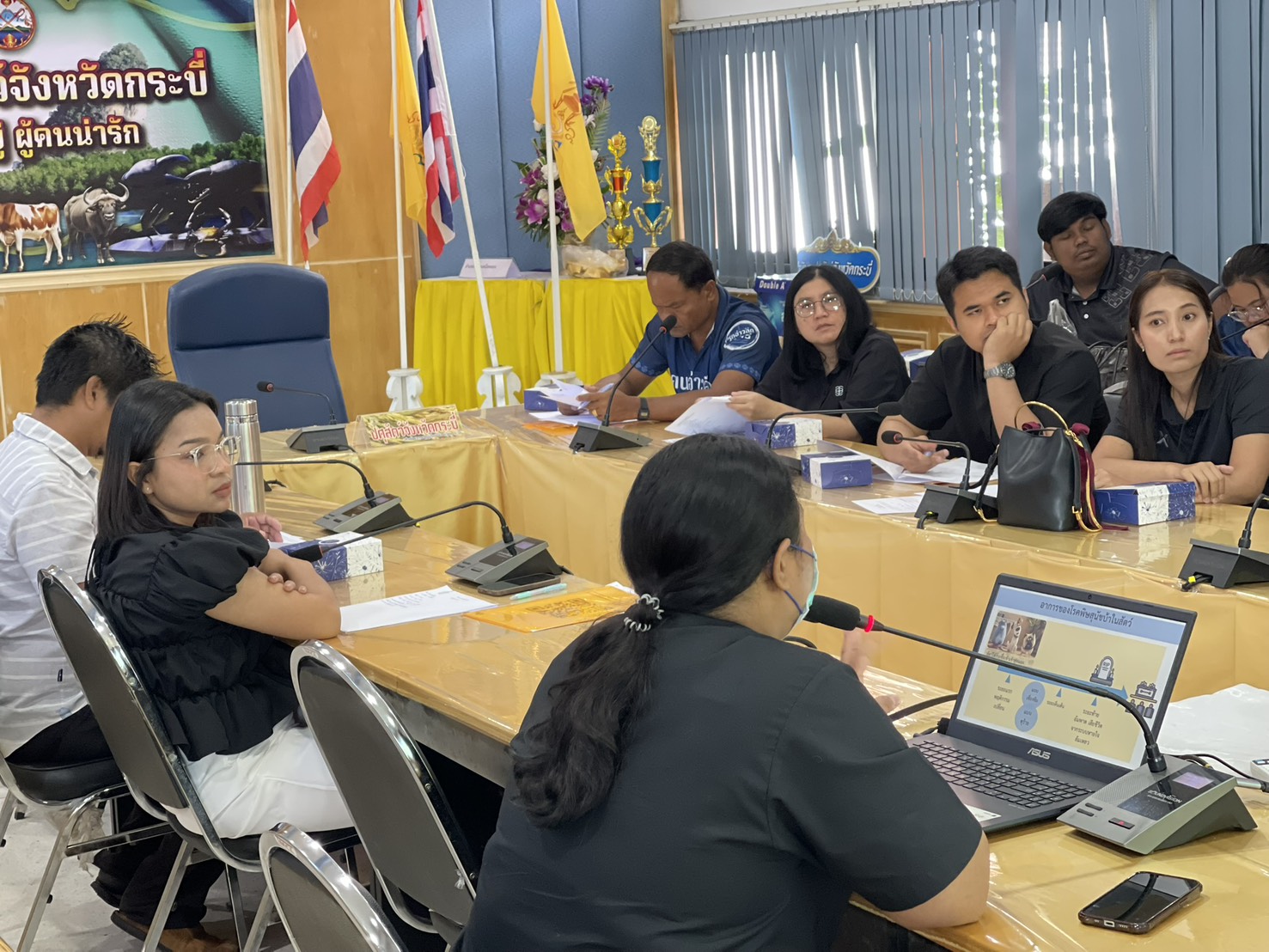เพื่อสร้างและพัฒนาศักยภาพอาสาปศุสัตว์ ด้านโรคพิษสุนัขบ้า ปีงบประมาณ พ.ศ. 2569 ภายใต้แผนยุทธศาสตร์การดำเนินโครงการสัตว์ปลอดโรค คนปลอดภัย จากโรคพิษสุนัขบ้า ตามพระปณิธาน ศาสตราจารย์ ดร.สมเด็จเจ้าฟ้าฯ กรมพระศรีสวางควัฒน วรขัตติยราชนารี พร้อมด้วยเจ้าหน้าที่กลุ่มพัฒนาสุขภาพสัตว์และเจ้าหน้าที่สำนักงานปศุสัตว์เขต 8 ร่วมเป็นวิทยากรในการบรรยายในหัวข้อ ความรู้เกี่ยวกับโรคพิษสุนัขบ้าทั้งในคนและในสัตว์ สถานการณ์ของโรค วัคซีนและการจัดการระบบห่วงโซ่วัคซีน ขั้นตอนและเทคนิคในการฉีดวัคซีน การเฝ้าระวัง ป้องกัน และควบคุมโรคพิษสุนัขบ้าภายใต้ พรบ.โรคระบาดสัตว์ 2558 และ พรบ.โรคพิษสุนัขบ้า พ.ศ. 2535 รุ่นที่ 2/2569 อาสาปศุสัตว์ในพื้นที่อำเภอคลองท่อม อำเภอลำทับ และอำเภอเกาะลันตา ณ ห้องประชุมสำนักงานปศุสัตว์จังหวัดกระบี่