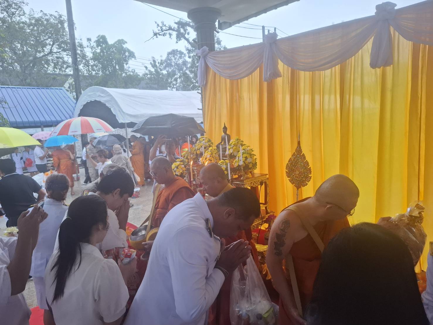 วันนี้ 25 พฤศจิกายน 2568 นายสัตวแพทย์วิสูตร นวลขาว นายสัตวแพย์ชำนาญการพิเศษรักษาราชการแทนปศุสัตว์จังหวัดกระบี่ พร้อมด้วยเจ้าหน้าที่กลุ่มพัฒนาคุณภาพสินค้าปศุสัตว์จังหวัดกระบี่ เข้าร่วมพิธีเจริญพระพุทธมนต์และทำบุญตักบาตรถวายเป็นพระราชกุศล เนื่องในวาระครบ 100 ปี วันคล้ายวันสวรรคตพระบาทสมเด็จพระมงกุฎเกล้าเจ้าอยู่หัว และครบ 100 ปี วันคล้ายวันประสูติสมเด็จพระเจ้าบรมวงศ์เธอ เจ้าฟ้าเพชรรัตนราชสุดา สิริโสภาพัณณวดี ณ วัดแก้วโกรวาราม พระอารามหลวง โดยมีนายอังกูร ศีลาเทวากูล ผู้ว่าราชการจังหวัดกระบี่ เป็นประธานในการประกอบพิธี