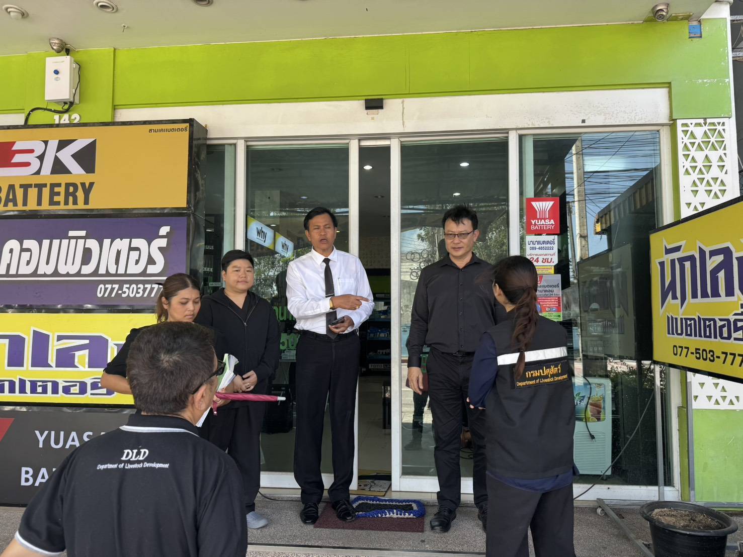 วันที่ 9 ธันวาคม 2568 เจ้าหน้าที่สำนักงานปศุสัตว์จังหวัดชุมพร เจ้าหน้าที่สำนักงานปศุสัตว์อำเภอเมืองชุมพร ลงพื้นที่ร่วมกับเจ้าหน้าที่สำนักงานเทศบาลเมืองชุมพร ได้ดำเนินการตรวจสอบข้อเท็จจริง ณร้านนักเลงแบตเตอรี่ ปรากฏว่าไม่พบผู้ถูกร้องเรียน พบเพียงลูกจ้างของร้าน จึงได้โทรติดต่อพูดคุยกับผู้ถูกร้องเรียน ซึ่งได้แจ้งว่าตนเองอยู่นอกพื้นที่ ยังไม่สะดวกให้เข้าตรวจสอบในวันนี้ ทั้งนี้เจ้าหน้าที่สำนักงานปศุสัตว์จังหวัดชุมพร ได้ชี้แจงทางโทรศัพท์เพื่อแนะนำวิธีการเลี้ยงสัตว์ที่ดีและการดูแลสุขลักษณะที่เหมาะสม ให้ผู้ถูกร้องเรียนดำเนินการเลี้ยงสัตว์ให้ถูกต้อง ตาม พรบ. ป้องกันการทารุณกรรมและการจัดสวัสดิภาพสัตว์ พ.ศ. 2557 และเจ้าหน้าที่สำนักงานเทศบาลเมืองชุมพร ได้ชี้แจง พรบ. การสาธารณสุข พ.ศ. ๒๕๓๕ และที่แก้ไขเพิ่มเติมถึง (ฉบับที่ ๓) พ.ศ. ๒๕๖๐ และได้นัดหมายผู้ถูกร้องเรียน ในการเข้าตรวจสอบร่วมกับหน่วยงานที่เกี่ยวข้อง ในวันที่ 11 ธันวาคม 2568 ณ ร้านนักเลงแบตเตอรี่