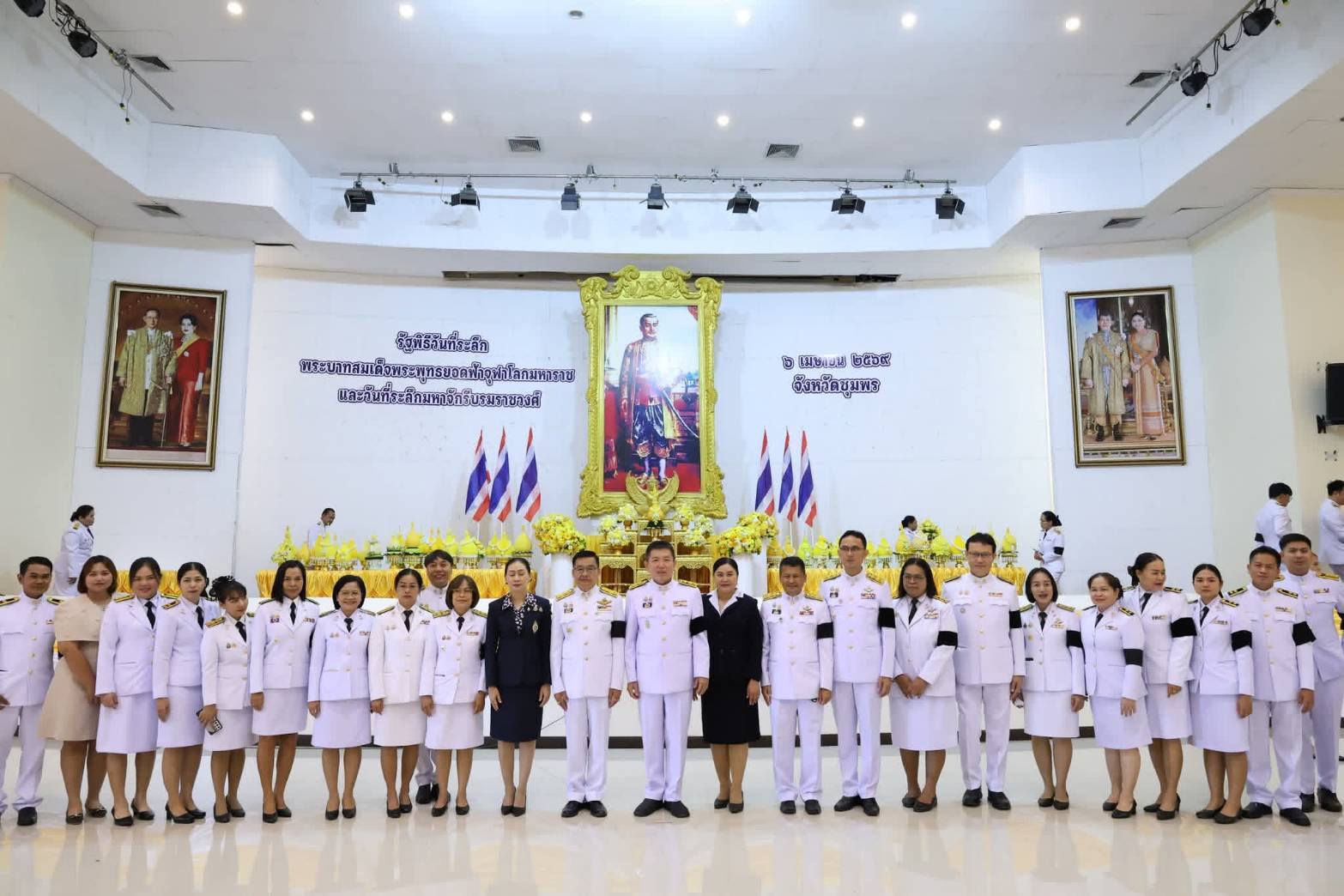 ว่าที่ร้อยตรีมลฑล เลาหภักดี ปศุสัตว์จังหวัดชุมพร มอบหมายให้นายจักรพงษ์ มนตริวัต หัวหน้ากลุ่มยุทธศาสตร์และสารสนเทศการปศุสัตว์พร้อมด้วยนายเสนีย์ จงประเสริฐ และน.ส.วันเพ็ญ หลวงสุ ร่วมในพิธีวางพุ่มดอกไม้ถวายราชสดุดี เนื่องในวันพระบาทสมเด็จพระพุทธยอดฟ้าจุฬาโลกมหาราช และวันที่ระลึกมหาจักรีบรมราชวงศ์ ประจำปี 2569 โดยมีนายเธียรชัย ชูกิตติวิบูลย์ ผู้ว่าราชการจังหวัดชุมพร เป็นประธานในพิธีฯ