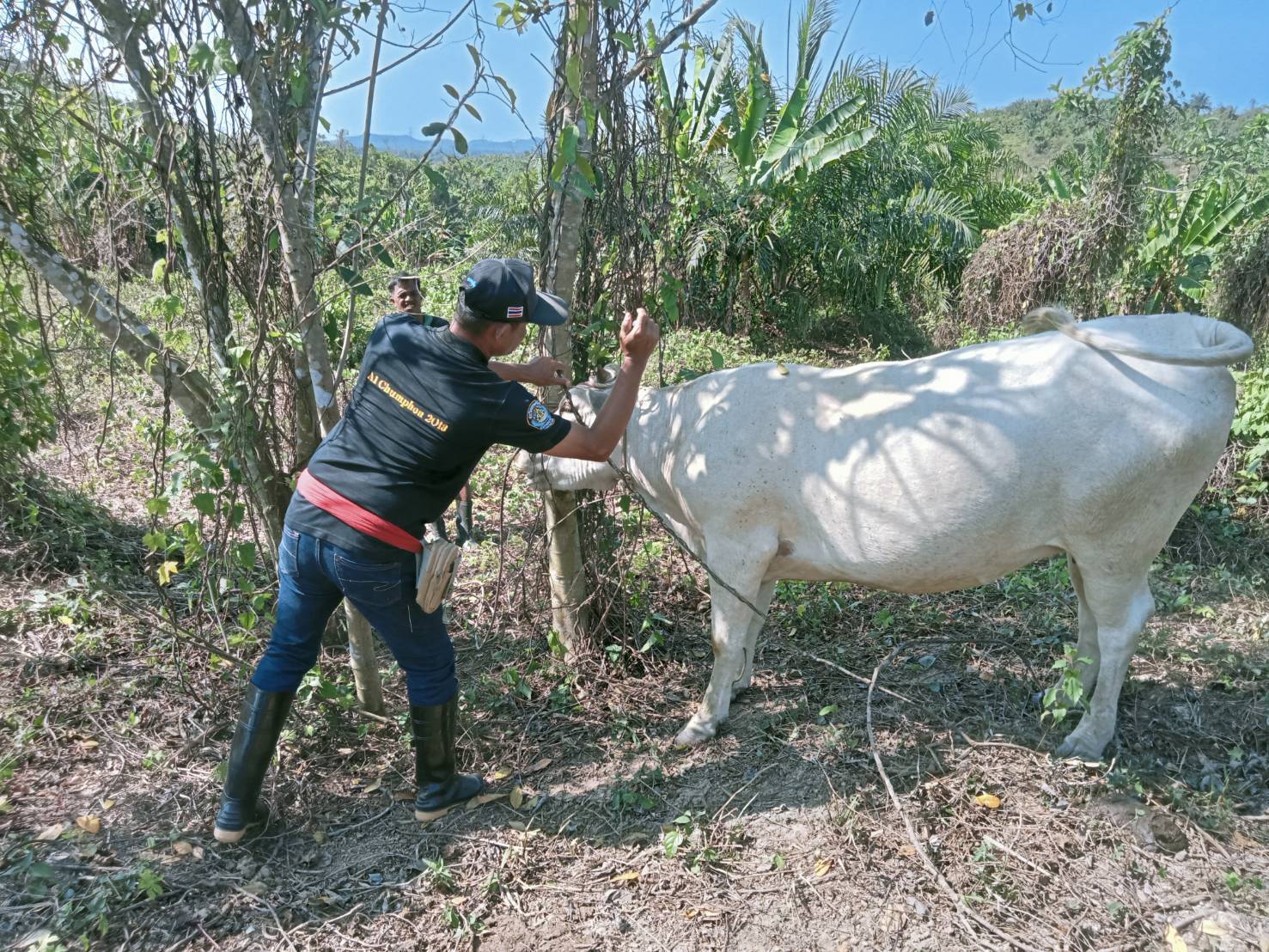 ว่าที่ร้อยตรีมณฑล เลาหภักดี ปศุสัตว์จังหวัดชุมพร มอบหมายให้ นางสาวภัคธนัช พรมบุญแก้ว นายสัตวแพทย์ชำนาญการ รักษาราชการแทนปศุสัตว์อำเภอท่าแซะ พร้อมด้วยเจ้าหน้าที่ ได้แก่ นายวสันต์ สิงหพันธ์ เจ้าพนักงานสัตวบาลชำนาญงาน นายอานนท์ นิลโต นายโกวิท เพชรทอง นายธนาวุฒิ จิตดี นายจิรศักดิ์ อินทร์แก้ว และนายจตุรงค์ เขาบาต เจ้าพนักงานสัตวบาล