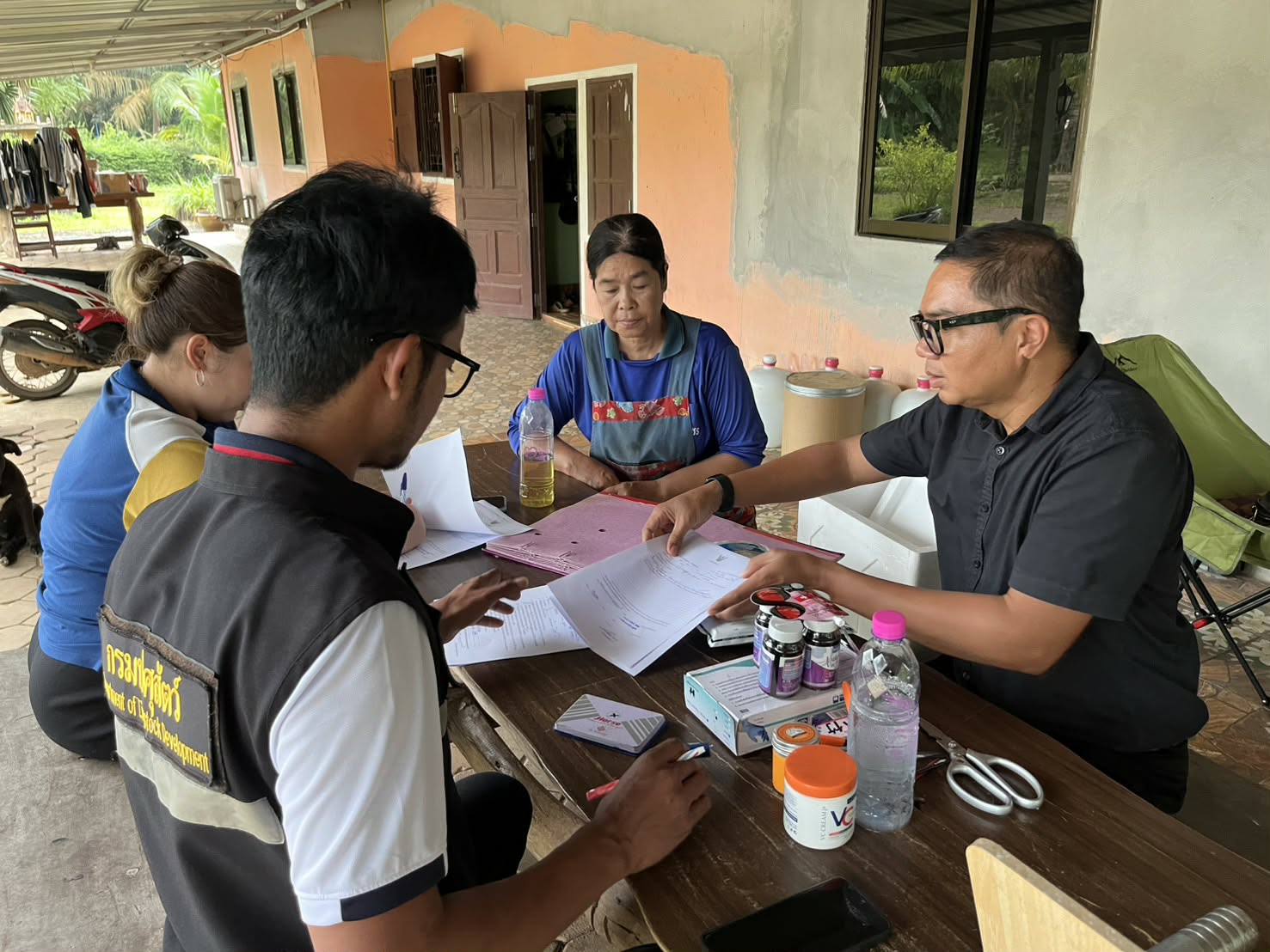 นายวสันต์ สิงหพันธ์ เจ้าพนักงานสัตวบาลชำนาญงาน นายกิตติกร สวัสดิ์ศรี เจ้าพนักงานสัตวบาล พร้อมด้วยนายวุฒินันท์ จีบบรรจง นักวิชาการสัตวบาล กลุ่มพัฒนาคุณภาพสินค้าปศุสัตว์ สำนักงานปศุสัตว์จังหวัดชุมพร