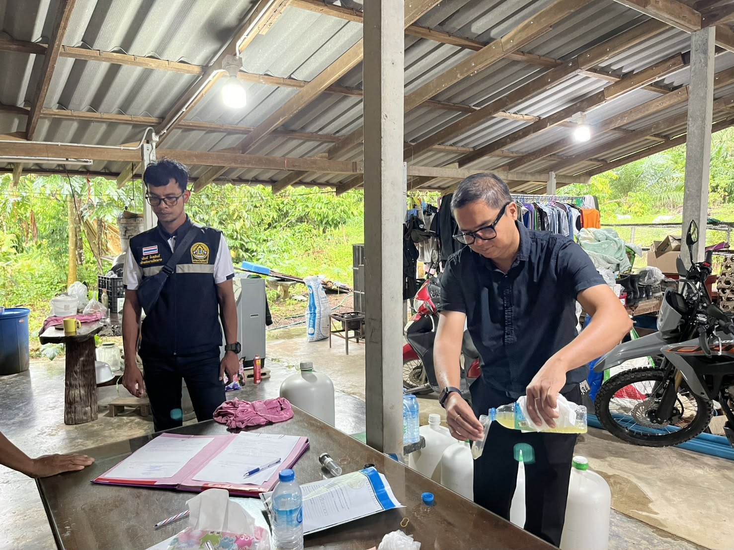 ร่วมดำเนินการ เก็บตัวอย่างปัสสาวะสุกรเพื่อตรวจหาสารเร่งเนื้อแดง (เบตาอะโกนิสต์) ในพื้นที่อำเภอท่าแซะ จังหวัดชุมพร จำนวน ๒ ฟาร์ม ได้แก่