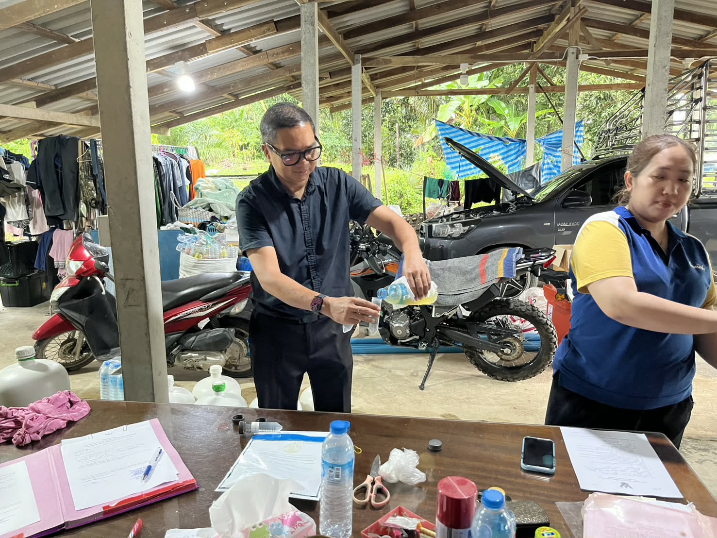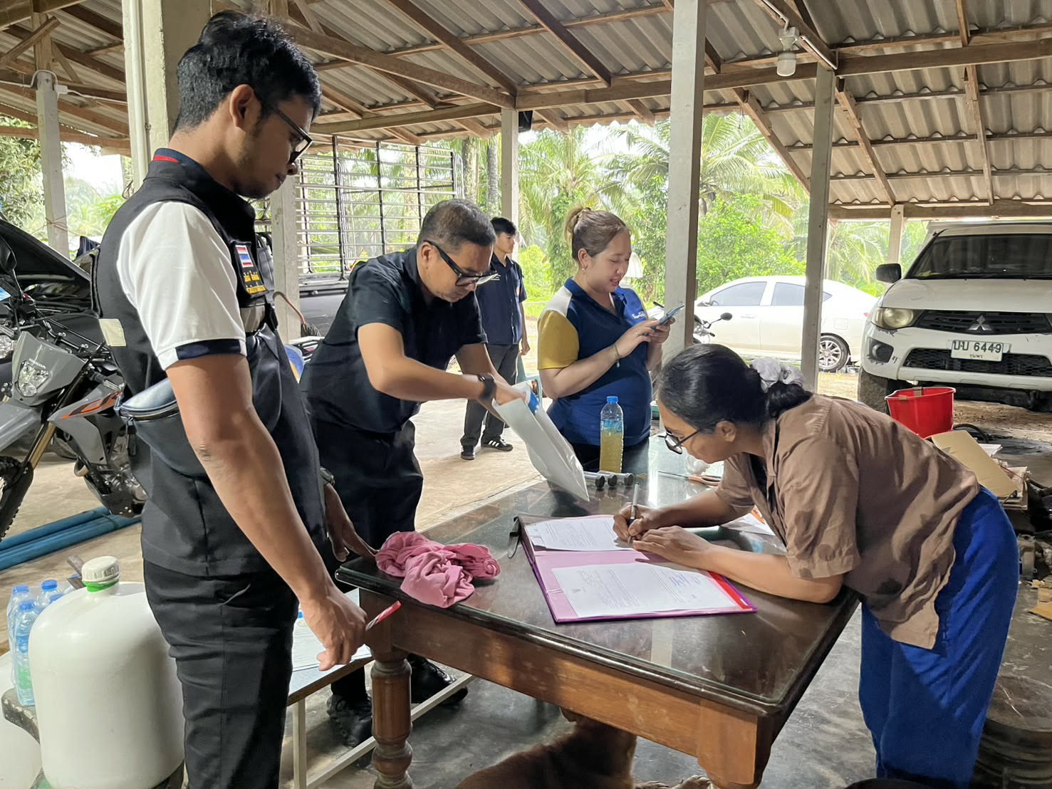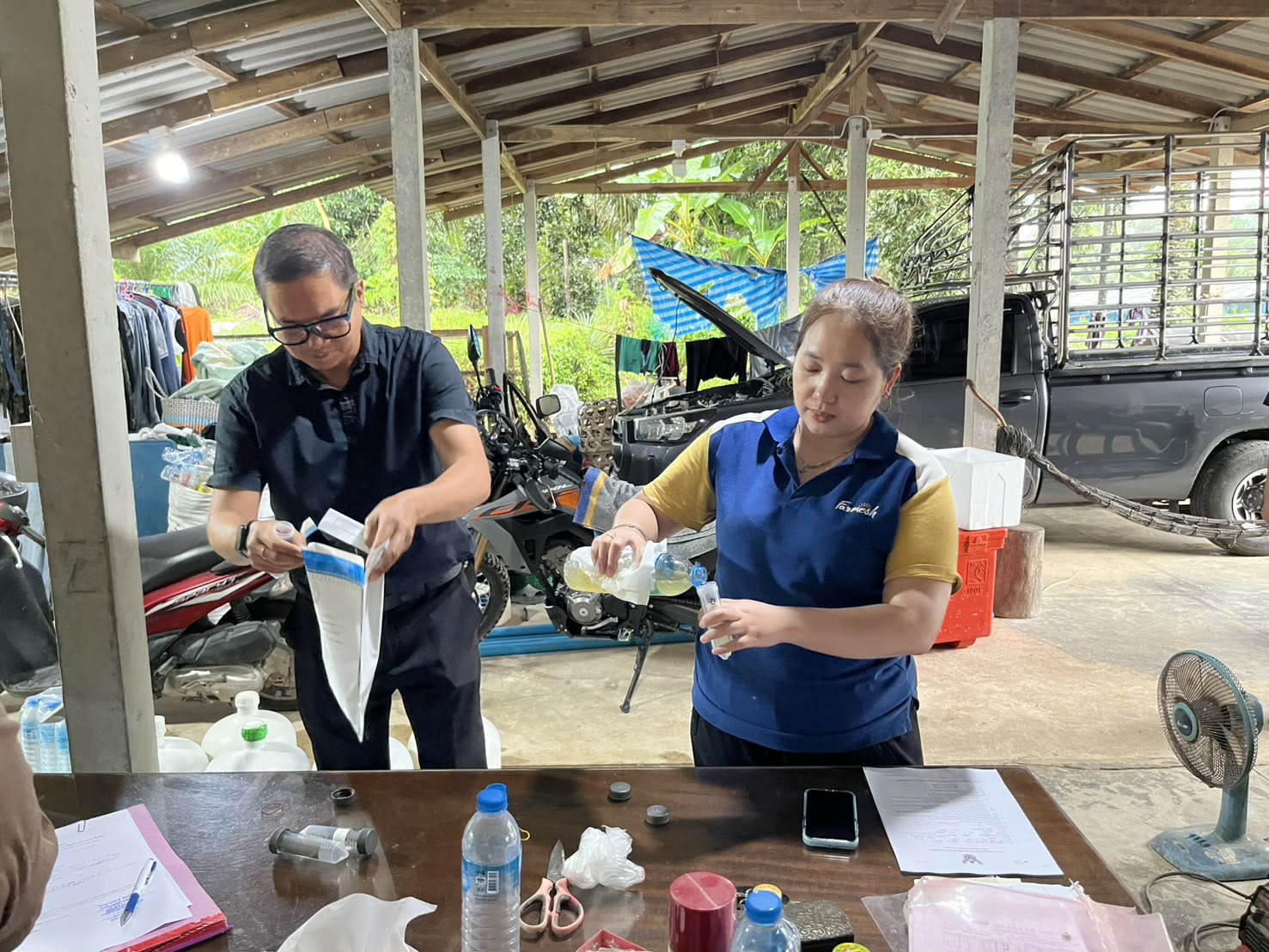 นายวสันต์ สิงหพันธ์ เจ้าพนักงานสัตวบาลชำนาญงาน นายกิตติกร สวัสดิ์ศรี เจ้าพนักงานสัตวบาล พร้อมด้วยนายวุฒินันท์ จีบบรรจง นักวิชาการสัตวบาล กลุ่มพัฒนาคุณภาพสินค้าปศุสัตว์ สำนักงานปศุสัตว์จังหวัดชุมพร