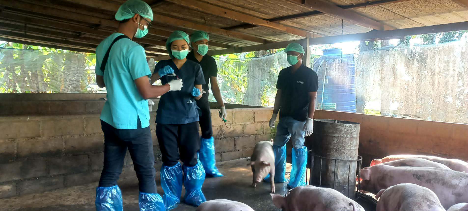 ดำเนินการเก็บตัวอย่างเลือดสุกรจากฟาร์มสุกรรายย่อยและรายเล็กที่มีสุกรน้อยกว่า ๕๐๐ ตัว โดยการเก็บตัวอย่างเลือด (Whole blood) ที่อยู่ในพื้นที่เสี่ยงต่อการพบโรคอหิวาต์แอฟริกาในสุกร จำนวน ๔ ฟาร์ม รวม ๒๐ ตัวอย่าง เพื่อเป็นไปตามแผนงานการเฝ้าระวังทางห้องปฏิบัติการของโรคอหิวาต์แอฟริกาในสุกรประจำปีงบประมาณ พ.ศ.๒๕๖๙ ซึ่งได้รับความร่วมมือจากเกษตรกรผู้เลี้ยงสุกรทั้ง ๔ รายเป็นอย่างดี