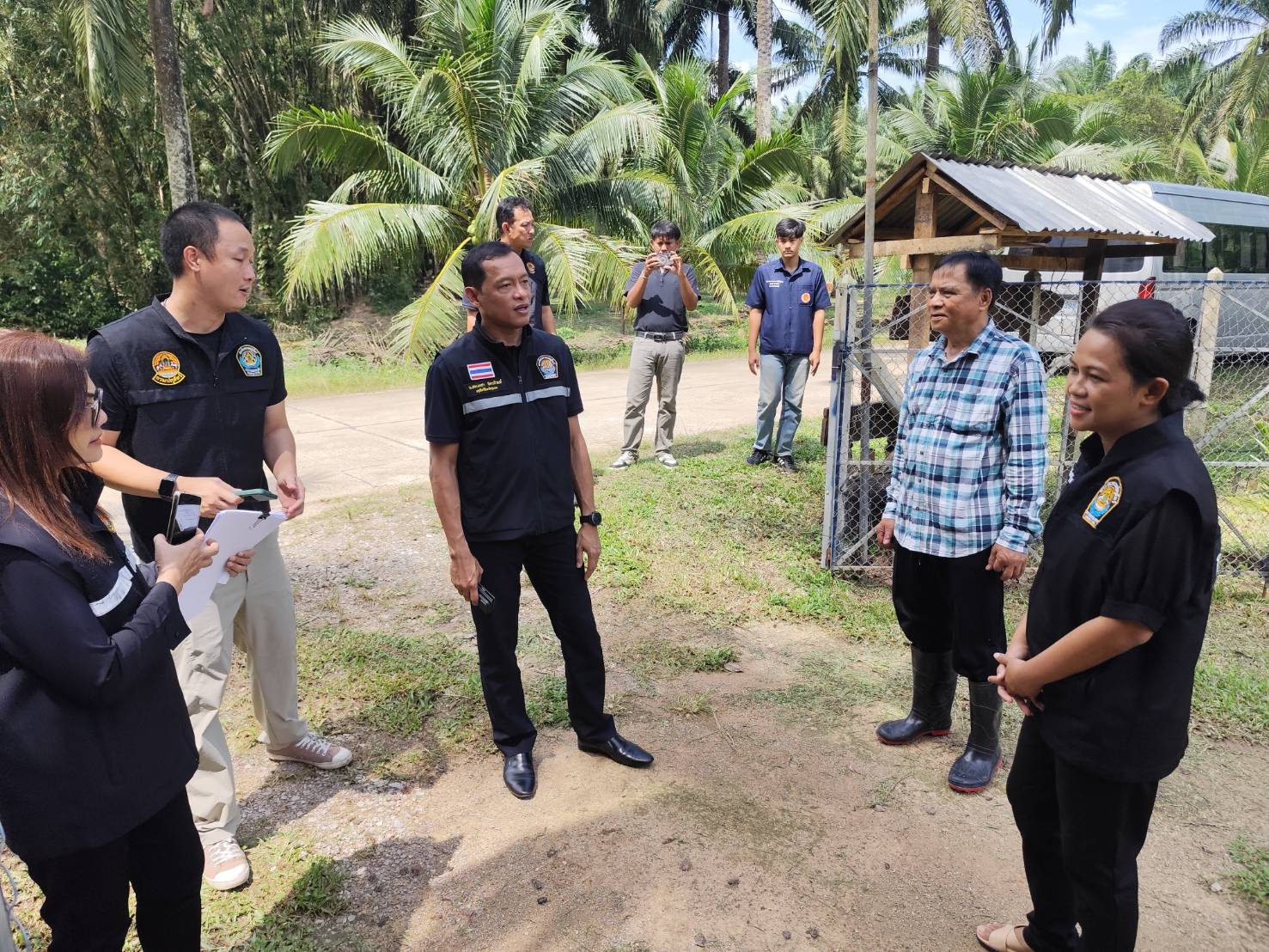 นายสัตวแพทย์เดชา จิตรภิรมย์ ปศุสัตว์จังหวัดชุมพร พร้อมด้วย นายสัตวแพทย์พิชัย โพธิ์กระสังข์ นายสัตวแพทย์ชำนาญการพิเศษ (หัวหน้ากลุ่มพัฒนาสุขภาพสัตว์) นางสาวภัคธนัช พรมบุญแก้ว นายสัตวแพทย์ชำนาญการ รักษาราชการแทนปศุสัตว์อำเภอท่าแซะ นายภพพร ตั้งทีฆะรักษ์ นายสัตวแพทย์ชำนาญการ. รักษาการในตำแหน่ง หัวหน้าด่านกักกันสัตว์ชุมพร และเจ้าหน้าที่ ดำเนินการลงพื้นที่ในอำเภอท่าแซะเพื่อร่วมการตรวจรับรองสำหรับสถานกักกันสัตว์เพื่อการนำเข้าในราชอาณาจักร