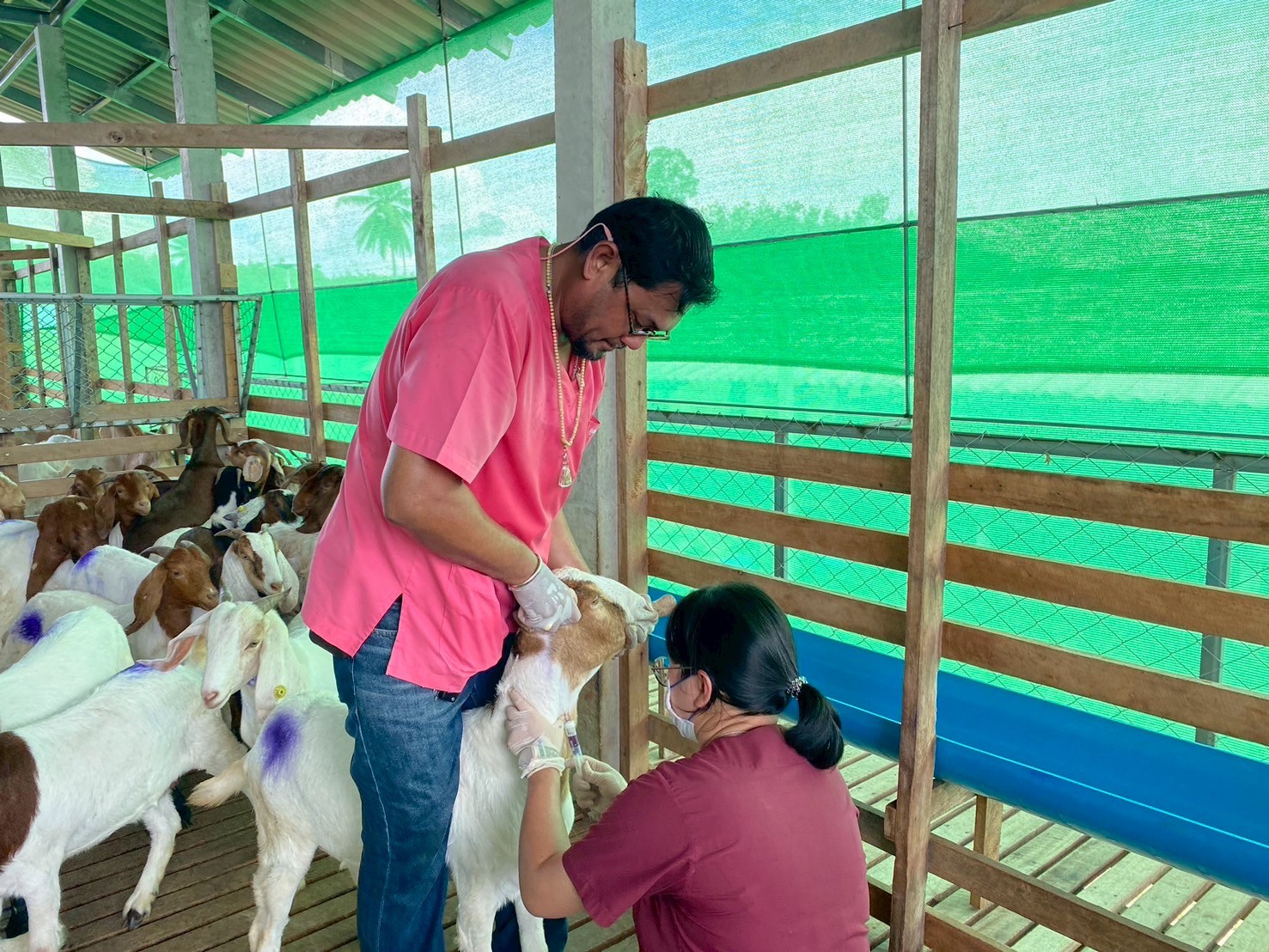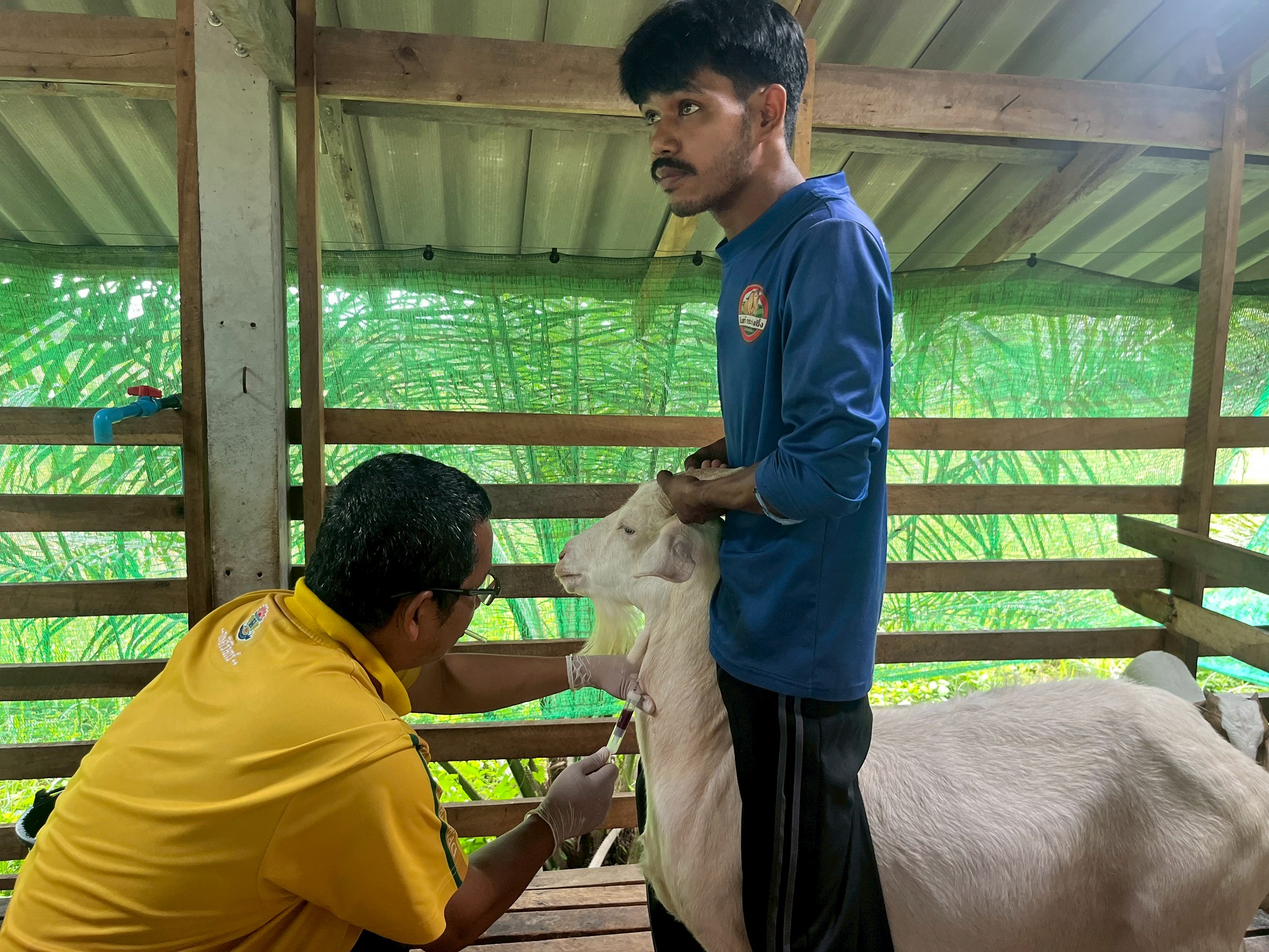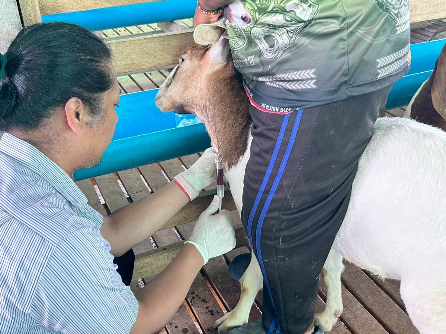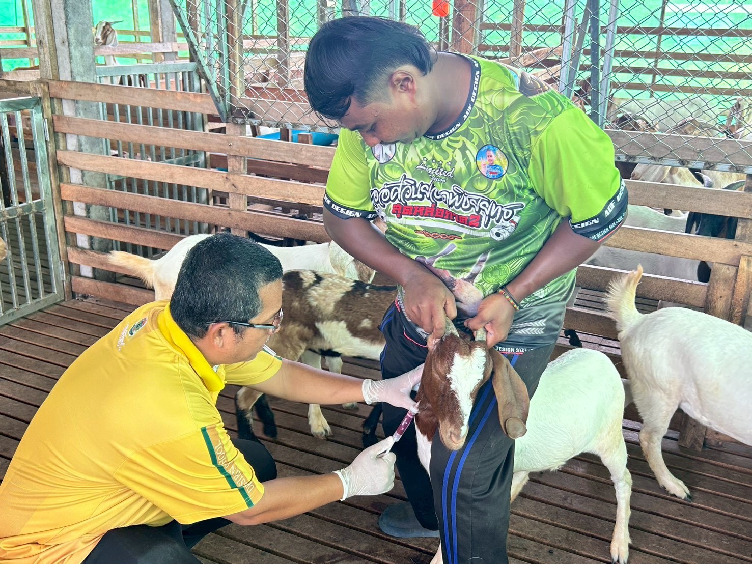 วันที่ 14 ตุลาคม 2568 นายกฤษณ์ วีระวงศ์ ปศุสัตว์จังหวัดตรัง พร้อมด้วยเจ้าหน้าที่กลุ่มพัฒนาสุขภาพสัตว์ และเจ้าหน้าที่สำนักงานปศุสัตว์อำเภอห้วยยอด ลงพื้นที่เก็บตัวอย่างเลือดแพะ จำนวน 145 ตัวอย่าง เพื่อยกระดับการตรวจรับรองสถานภาพฟาร์มปลอดโรคบรูเซลลา ระดับ B ในฟาร์มแพะเนื้อ พร้อมให้คำแนะนำการดูแลและการเลี้ยงสัตว์อย่างเหมาะสม ณ หมู่ 10 ตำบลหนองช้างแล่น อำเภอห้วยยอด จังหวัดตรัง