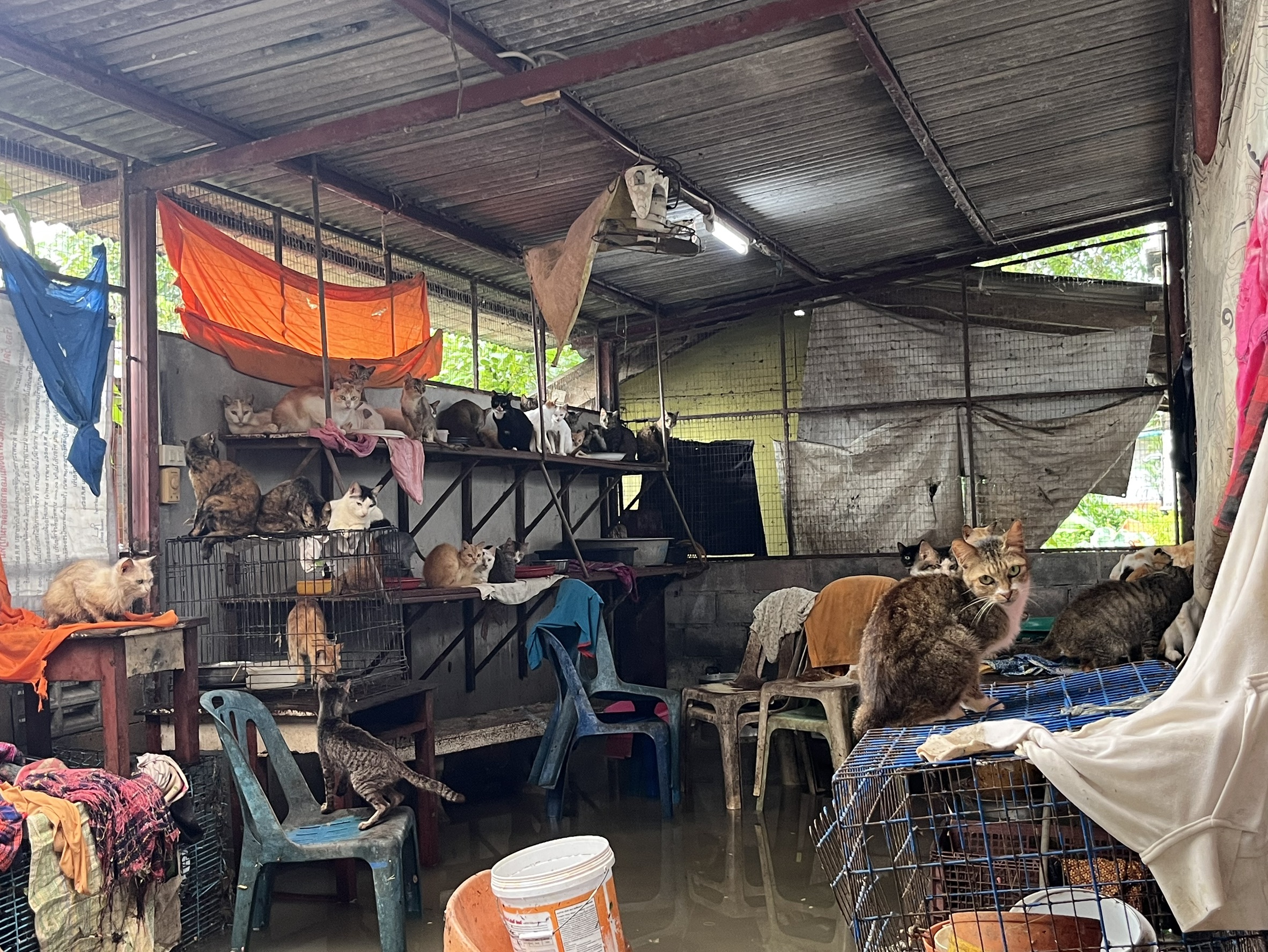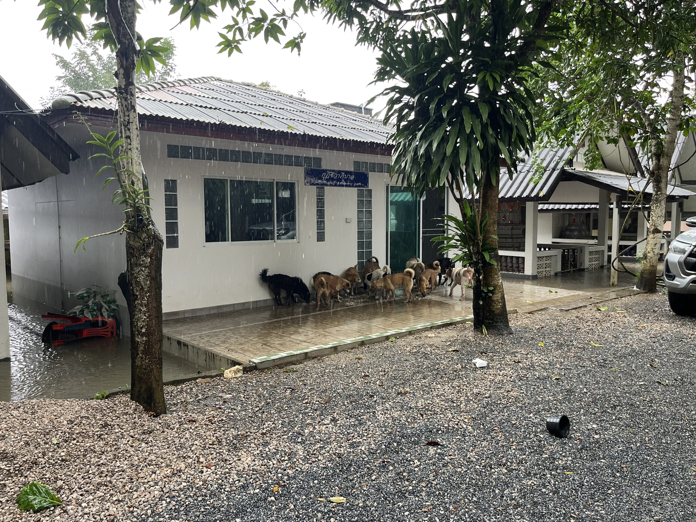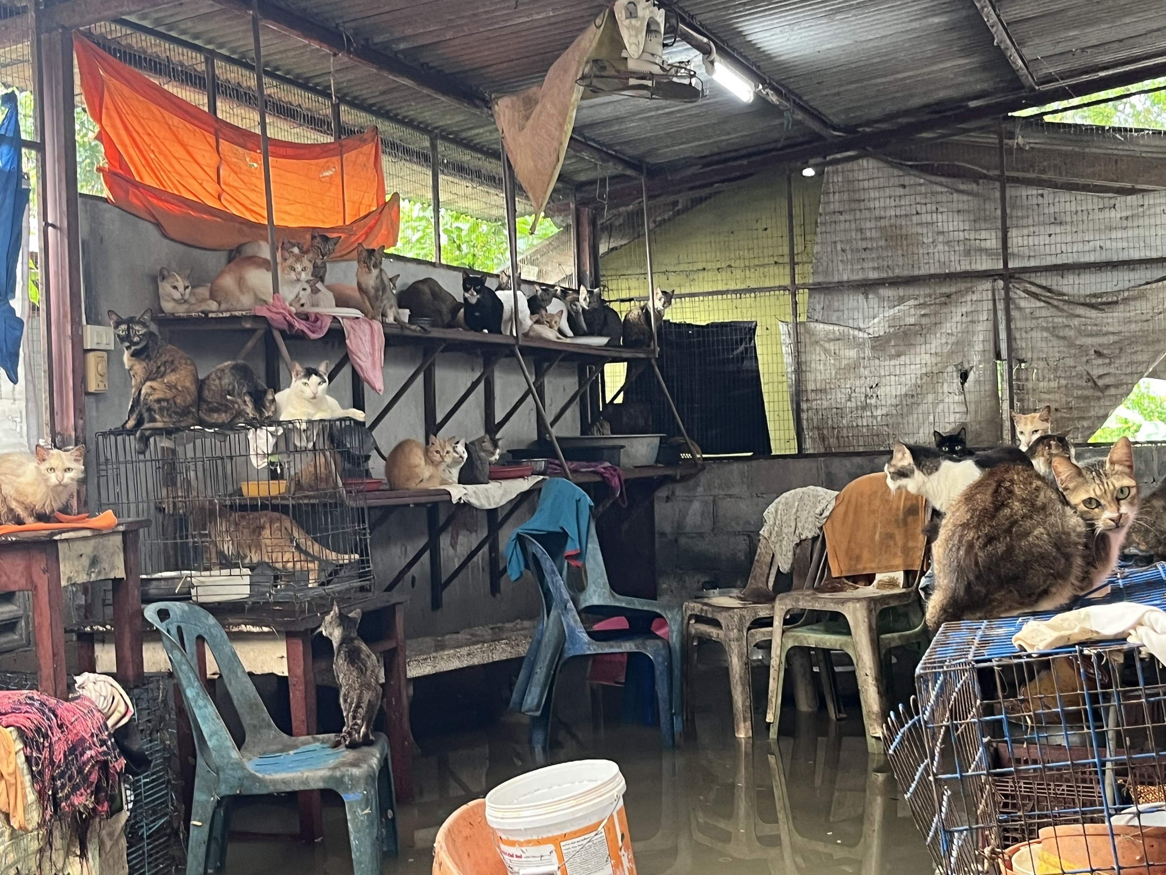 วันที่ 23 พฤศจิกายน 2568 น.สพ.กฤษณ์ วีระวงศ์ ปศุสัตว์จังหวัดตรัง พร้อมด้วย สพ.ญ.สุพิชญา ชั้นสกุล หัวหน้ากลุ่มพัฒนาสุขภาพสัตว์ และเจ้าหน้าที่ ลงพื้นที่ตรวจเยี่ยมและช่วยเหลือสุนัข แมว ด้อยโอกาสที่ได้รับผลกระทบจากอุทกภัย ในวัดนิกรรังสฤษฎิ์ พื้นที่อำเภอย่านตาขาว จังหวัดตรัง โดยมีสุนัข จำนวน 23 ตัว แมว จำนวน 31 ตัว ได้รับการช่วยเหลือนำขึ้นสู่ที่สูง และดำเนินการตรวจสุขภาพเบื้องต้น พบสุนัขอาการป่วย 2 ตัว ได้ทำการรักษาและให้คำแนะนำในการดูแลเบื้องต้นแล้ว