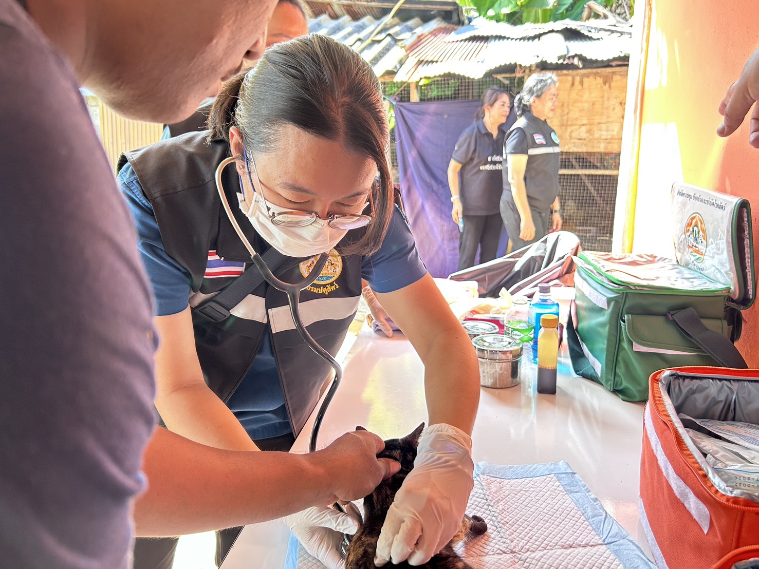 วันที่ 10 ธันวาคม 2568 เวลา 15.00 น. นายอัครา พรหมเผ่า รัฐมนตรีว่าการกระทรวงการพัฒนาสังคมและความมั่นคงของมนุษย์ (รมว.พม.) และคณะผู้บริหารกระทรวง พม. ลงพื้นที่ตำบลนาตาล่วง อำเภอเมืองตรัง จังหวัดตรัง เพื่อตรวจเยี่ยมบ้านกลุ่มเปราะบางที่มีเด็ก ผู้สูงอายุ และผู้พิการ ที่ได้รับผลกระทบจากอุทกภัย การนี้ น.สพ.กฤษณ์ วีระวงศ์ ปศุสัตว์จังหวัดตรัง มอบหมายให้ นายถาวร รัตนบุรี หัวหน้ากลุ่มยุทธศาสตร์และสารสนเทศการปศุสัตว์ พร้อมด้วย สพ.ญ.สุพิชญา ชั้นสกุล นายสัตวแพทย์ปฏิบัติการ และเจ้าหน้าที่สำนักงานปศุสัตว์จังหวัดตรัง เข้าดำเนินการตรวจรักษาสัตว์ป่วย และฉีดวัคซีนป้องกันโรคแก่สัตว์เลี้ยง จำนวน 62 ตัว พร้อมทั้งให้คำแนะนำในการดูแลฟื้นฟูสุขภาพ และการป้องกันโรคจากสัตว์สู่คน (Zoonosis) และได้มอบอาหารแมว จำนวน 40 กิโลกรัม ให้แก่ครอบครัวกลุ่มเปราะบาง และวางแผนการควบคุมประชากรสัตว์ ด้วยการผ่าตัดทำหมัน ต่อไป