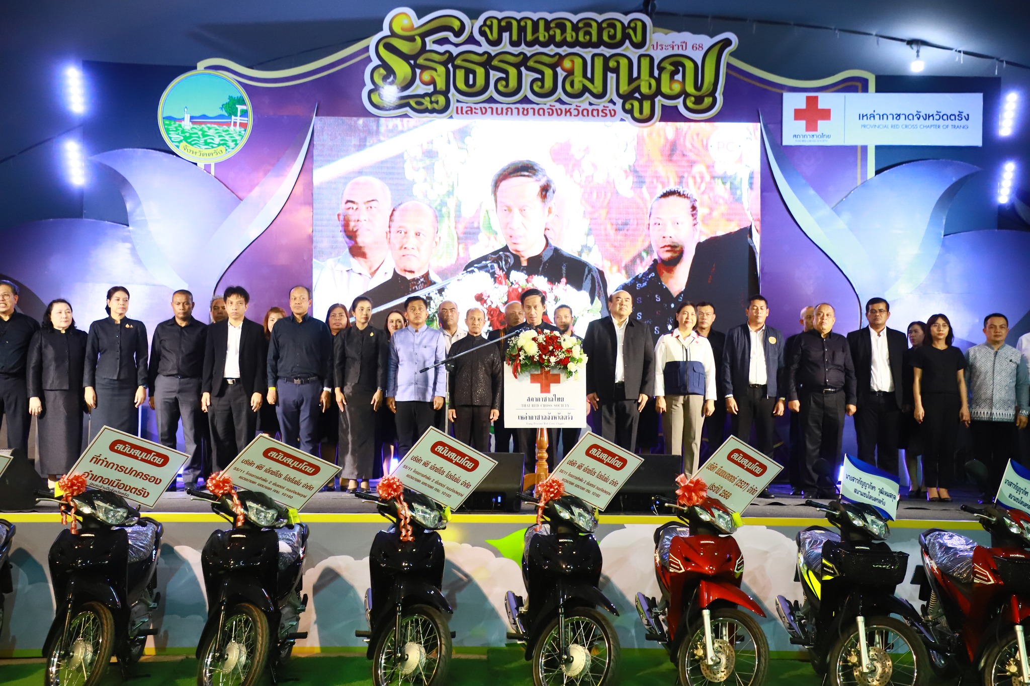 วันที่ 4 ธันวาคม 2568 เวลา 13.30 - 15.30 น. นายสัตวแพทย์กฤษณ์ วีระวงศ์ ปศุสัตว์จังหวัดตรัง พร้อมด้วยเจ้าหน้าที่สำนักงานปศุสัตว์จังหวัดตรัง ร่วมพิธีเปิดร้านนาวากาชาดจังหวัดตรัง และกิจกรรมในงานฉลองรัฐธรรมนูญจังหวัดตรัง ประจำปี 2568 พร้อมหัวหน้าส่วนราชการจังหวัดตรัง และร่วมโครงการส่งเสริมการท่องเที่ยวเชิงวัฒนธรรมและประเพณีจังหวัดตรัง (Cultural and Traditional Tourism) กิจกรรมส่งเสริมสืบสานศิลปะและวัฒนธรรมและอัตลักษณ์ความเป็นไทย ในงานฉลองรัฐธรรมนูญและงานกาชาดจังหวัดตรัง ประจำปี 2568 ระหว่างวันที่ 4-15 ธันวาคม 2568 ณ ลานวัฒนธรรม สนามกีฬาเทศบาลนครตรัง 2 (ทุ่งแจ้ง) อำเภอเมืองตรัง จังหวัดตรัง