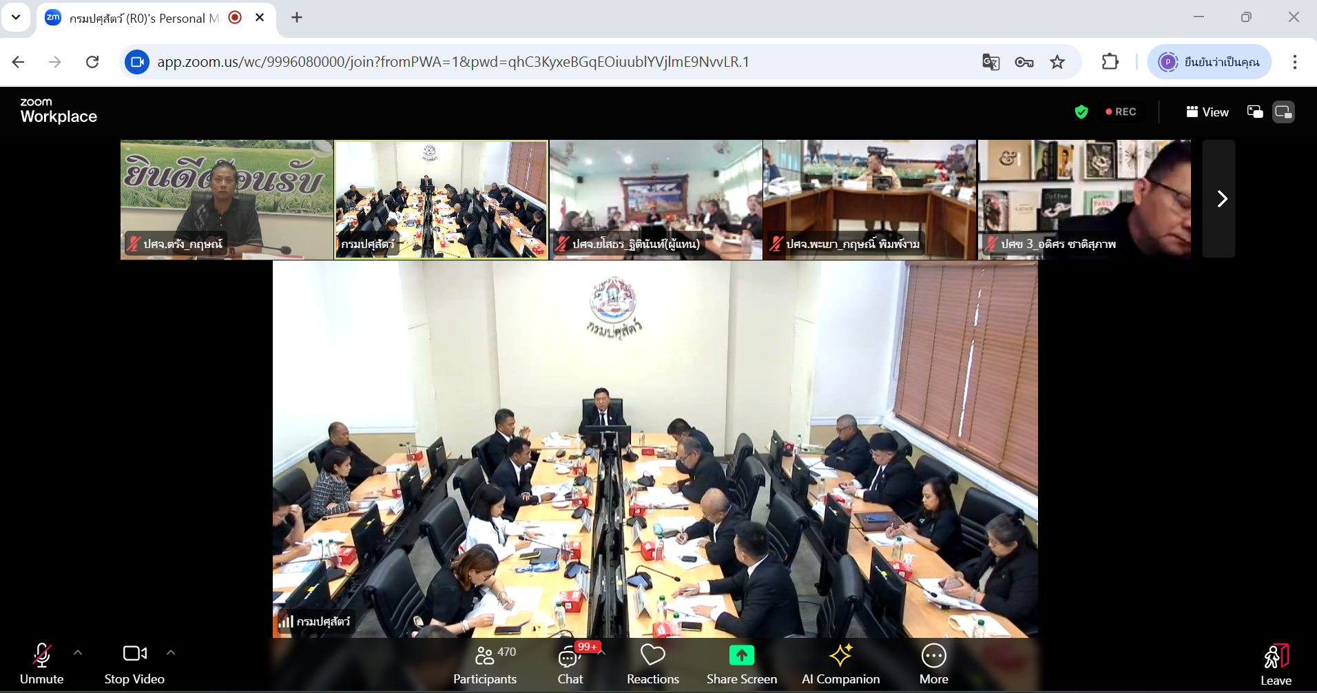 วันศุกร์ที่ 26 ธันวาคม 2568 เวลา 15.30 น. นายกฤษณ์ วีระวงศ์ พร้อมด้วยหัวหน้ากลุ่ม/ฝ่าย และปศุสัตว์อำเภอ เข้าร่วมประชุมผู้บริหารกรมปศุสัตว์ ประจำปีงบประมาณ พ.ศ.2569 ครั้งที่ 2 ผ่านระบบประชุมทางไกล Zoom Conference Meeting ณ ห้องประชุมสำนักงานปศุสัตว์จังหวัดตรัง อำเภอเมืองตรัง จังหวัดตรัง โดยมี นายสัตวแพทย์สมชวน รัตนมังคลานนท์ อธิบดีกรมปศุสัตว์ เป็นประธานการประชุมฯ พร้อมด้วยปศุสัตว์เขต ปศุสัตว์จังหวัด ปศุสัตว์อำเภอ หัวหน้าศูนย์ฯ หัวหน้าสถานฯ และหัวหน้าด่านกักกันสัตว์ เข้าร่วมประชุม เพื่อแจ้งผลการดำเนินงานตามนโยบายของกรมปศุสัตว์ ประจำปีงบประมาณ 2569 รอบ 3 เดือน (ตุลาคม – ธันวาคม 2568) การให้ความช่วยเหลือผู้ประสบภัยพิบัติด้านปศุสัตว์ จากกรณีภัยเหตุปะทะชายแดนไทย - กัมพูชา และกรณีอุทกภัยในพื้นที่ภาคใต้