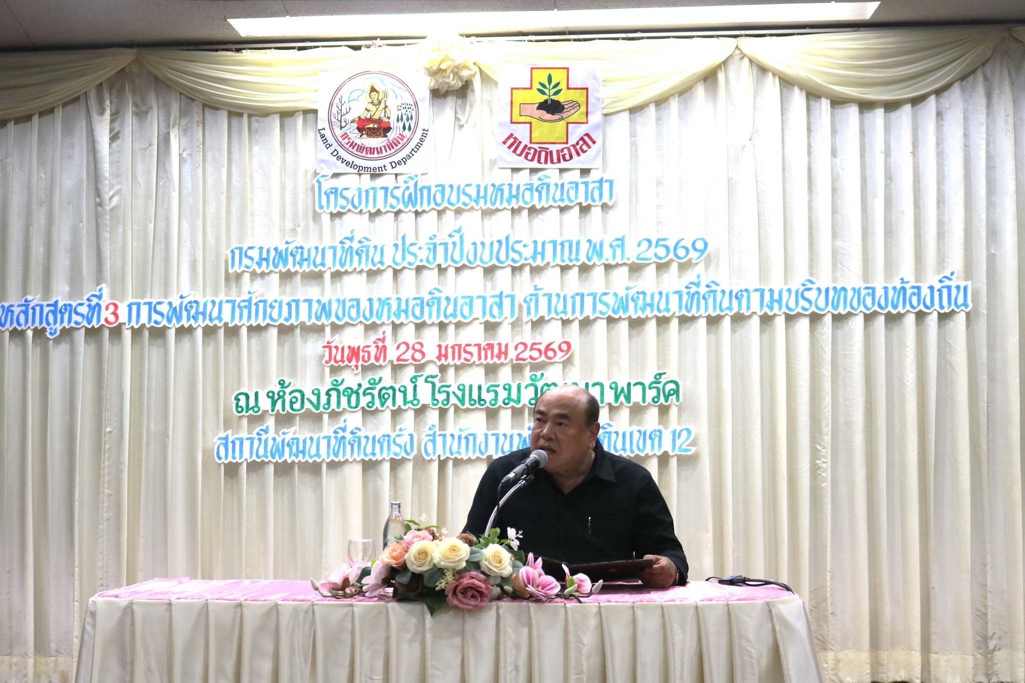 วันที่ 28 มกราคม 2569 เวลา 09.30 น. นายสัตวแพทย์กฤษณ์ วีระวงศ์ ปศุสัตว์จังหวัดตรัง มอบหมายให้นายถาวร รัตนบุรี หัวหน้ากลุ่มยุทธศาสตร์และสารสนเทศการปศุสัตว์ ร่วมพิธีเปิดโครงการฝึกอบรมหมอดินอาสา ประจำปีงบประมาณ พ.ศ. 2568 หลักสูตรการพัฒนาศักยภาพของหมอดินอาสา ด้านการพัฒนาที่ดินตามบริบทของท้องถิ่น โดยมี นายอภิชาติ สาราบรรณ์ รองผู้ว่าราชการจังหวัดตรัง เป็นประธานในพิธีเปิด มีหัวหน้าส่วนราชการกระทรวงเกษตรและสหกรณ์ หมอดินอาสาในจังหวัดตรังร่วม ณ ห้องภัชรัตน์ โรงแรมวัฒนาพาร์ค อำเภอเมืองตรัง จังหวัดตรัง
