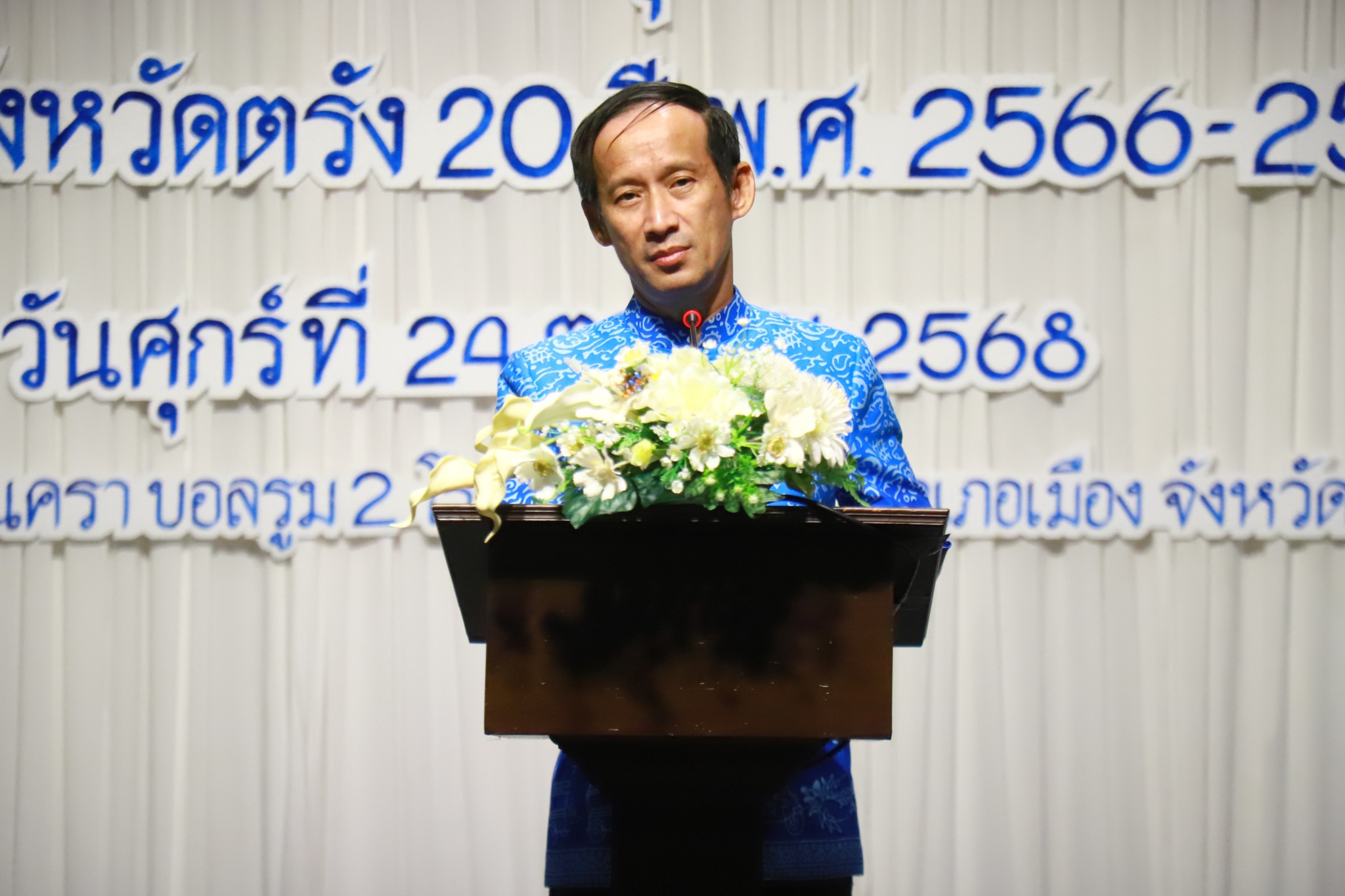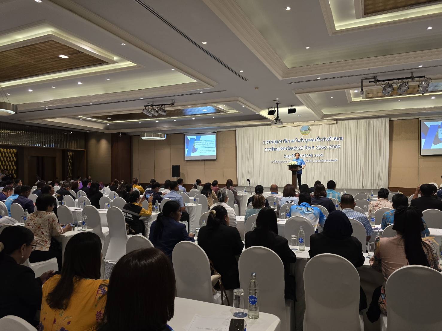วันที่ 24 ตุลาคม 2568 เวลา 09.00 น. นายกฤษณ์ วีระวงศ์ ปศุสัตว์จังหวัดตรัง มอบหมายให้ นายถาวร รัตนบุรี หัวหน้ากลุ่มยุทธศาสตร์และสารสนเทศการปศุสัตว์ พร้อมด้วยนางสาววิลาวัลย์ ดำยศ เจ้าหน้าที่ระบบงานคอมพิวเตอร์ เข้าร่วมประชุมหารือร่วมกันกับบุคคล เกี่ยวกับเป้าหมายการพัฒนาจังหวัดตรังยี่สิบปี พ.ศ.2566 – 2585 โดยมีนายทรงกลด สว่างวงศ์ ผู้ว่าราชการจังหวัดตรัง เป็นประธานการประชุมฯ พร้อมหน่วยงานที่เกี่ยวข้อง เพื่อให้การจัดทำเป้าหมายการพัฒนาจังหวัดยี่สิบปี พ.ศ.2566 – 2585 เป็นไปด้วยความเรียบร้อย ตามนโยบาย หลักเกณฑ์ของ ก.น.บ. ณ ห้องนครา บอลรูม 2 โรงแรม เรือรัษฎา จังหวัดตรัง