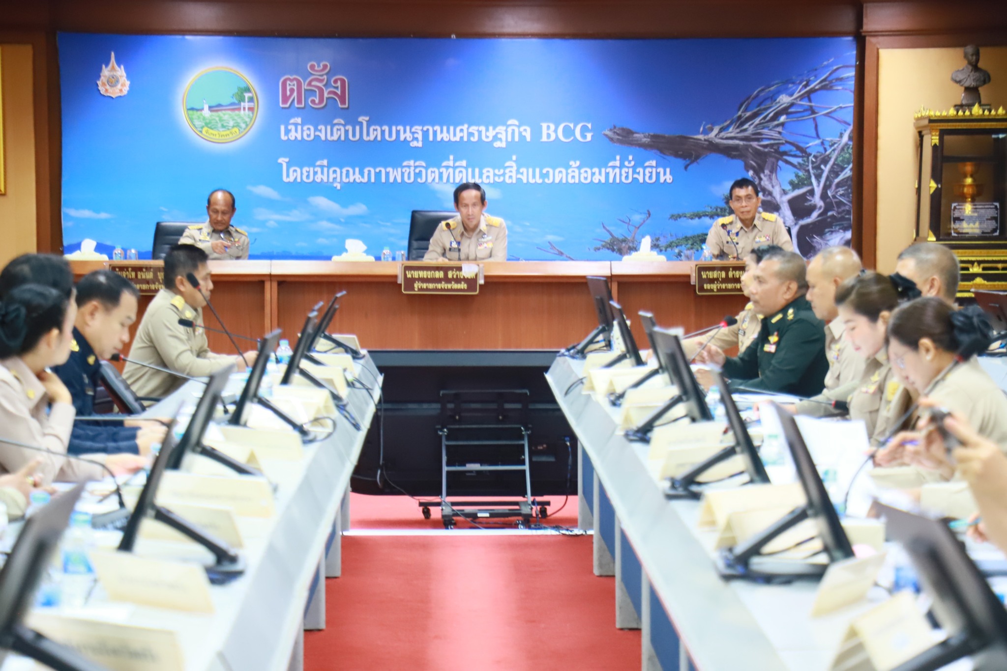 วันที่ 29 ตุลาคม 2568 เวลา 09.00 น. นายกฤษณ์ วีระวงศ์ ปศุสัตว์จังหวัดตรัง มอบหมายให้นายถาวร รัตนบุรี หัวหน้ากลุ่มยุทธศาสตร์และสารสนเทศการปศุสัตว์ เข้าร่วมประชุมคณะกรมการจังหวัด หัวหน้าส่วนราชการ และหัวหน้าหน่วยงานที่เกี่ยวข้อง ครั้งที่ 10/2568 ประจำเดือนตุลาคม 2568 โดยมีนายทรงกลด สว่างวงศ์ ผู้ว่าราชการจังหวัดตรัง เป็นประธานการประชุมดังกล่าว พร้อมด้วย รองผู้ว่าราชการจังหวัดตรัง ปลัดจังหวัดตรัง นายอำเภอ อัยการ ทหาร ตำรวจ หัวหน้าส่วนราชการ รัฐวิสาหกิจ ภาคเอกชน และหน่วยงานที่เกี่ยวข้อง เข้าร่วมประชุม ณ ห้องพระยารัษฎา ชั้น 5 ศาลากลางจังหวัดตรัง