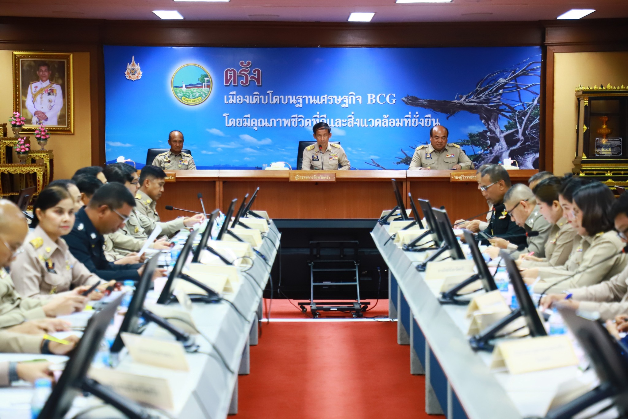 วันที่ 27 กุมภาพันธ์ 2569 เวลา 09.00 น. นายสัตวแพทย์กฤษณ์ วีระวงศ์ ปศุสัตว์จังหวัดตรัง มอบหมายให้นายถาวร รัตนบุรี หัวหน้ากลุ่มยุทธศาสตร์และสารสนเทศการปศุสัตว์ ร่วมประชุมคณะกรมการจังหวัด ประจำเดือนกุมภาพันธ์ 2569 โดยมีนายทรงกลด สว่างวงศ์ ผู้ว่าราชการจังหวัดตรัง เป็นประธานในการประชุมคณะกรมการจังหวัด หัวหน้าส่วนราชการ และหน่วยงานที่เกี่ยวข้อง เข้าร่วมประชุมฯ เพื่อรับทราบผลการดำเนินงานและวางแนวทางขับเคลื่อนการพัฒนาจังหวัดในมิติต่างๆ โดยมี รองผู้ว่าราชการจังหวัดตรัง ปลัดจังหวัดตรัง นายอำเภอ อัยการ ทหาร ตำรวจ หัวหน้าส่วนราชการ รัฐวิสาหกิจ ภาคเอกชน และหน่วยงานที่เกี่ยวข้อง เข้าร่วมประชุม ณ ห้องประชุมพระยารัษฎา ชั้น 5 ศาลากลางจังหวัดตรัง