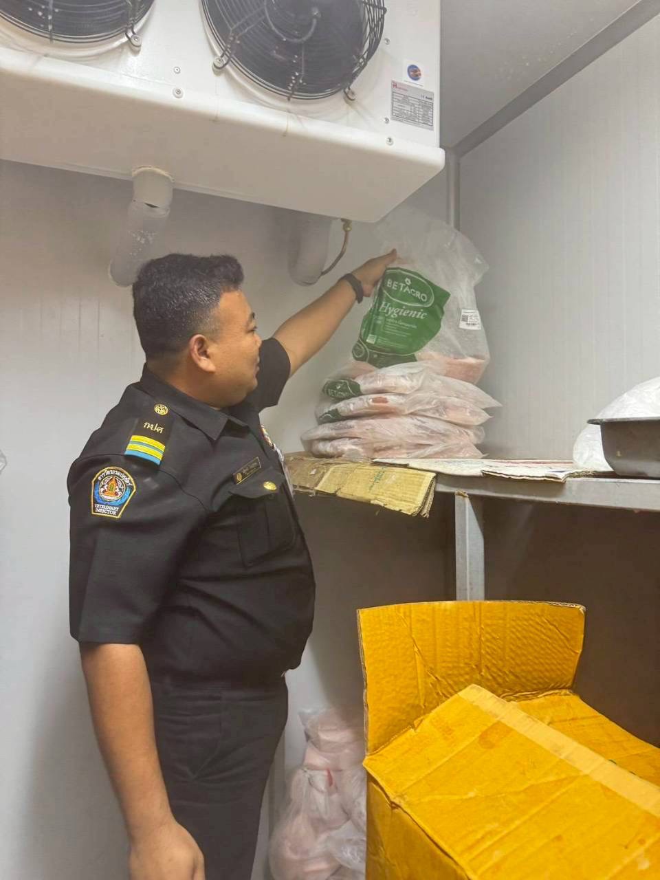 วันที่ 12 พฤศจิกายน 2568 นายกฤษณ์ วีระวงศ์ ปศุสัตว์จังหวัดตรัง มอบหมายให้กลุ่มพัฒนาสุขภาพสัตว์ ร่วมกับสำนักงานปศุสัตว์อำเภอ และด่านกักกันสัตว์จังหวัดตรัง ดำเนินการเข้าตรวจสอบห้องเย็นและสถานที่จำหน่ายอาหารสัตว์ (Food Service) จำนวน 6 แห่ง ในพื้นที่อำเภอวังวิเศษ พื้นที่อำเภอห้วยยอด และพื้นที่อำเภอเมือง จังหวัดตรัง ได้แก่