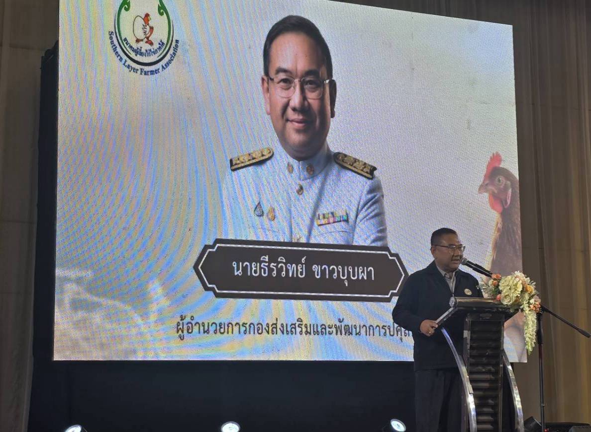 นายสัตวแพทย์เดชา จิตรภิรมย์ ปศุสัตว์จังหวัดนครศรีธรรมราช พร้อมด้วยเจ้าหน้าที่กลุ่มพัฒนาคุณภาพสินค้าปศุสัตว์ เข้าร่วมประชุมใหญ่สามัญประจำปี 2569 สมาคมผู้เลี้ยงไก่ไข่ภาคใต้ โดยมีนายเอกชัย สุนทร รองผู้ว่าราชการจังหวัดนครศรีธรรมราช ร่วมเป็นเกียรติและกล่าวต้อนรับผู้เข้าร่วมประชุม นายธีรวิทย์ ขาวบุบผา ผู้อำนวยการกองส่งเสริมและพัฒนาการปศุสัตว์ ร่วมมอบนโยบายกรมปศุสัตว์การประชุมมีการบรรยายนโยบายและทิศทางการพัฒนาอุตสาหกรรมไก่ไข่ การนำเสนอผลิตภัณฑ์บริการ การรายงานผลดำเนินการของสมาคม และการจัดบูธนิทรรศการ ณ โรงแรมแกรนด์ฟอร์จูน อำเภอเมือง จังหวัดนครศรีธรรมราช