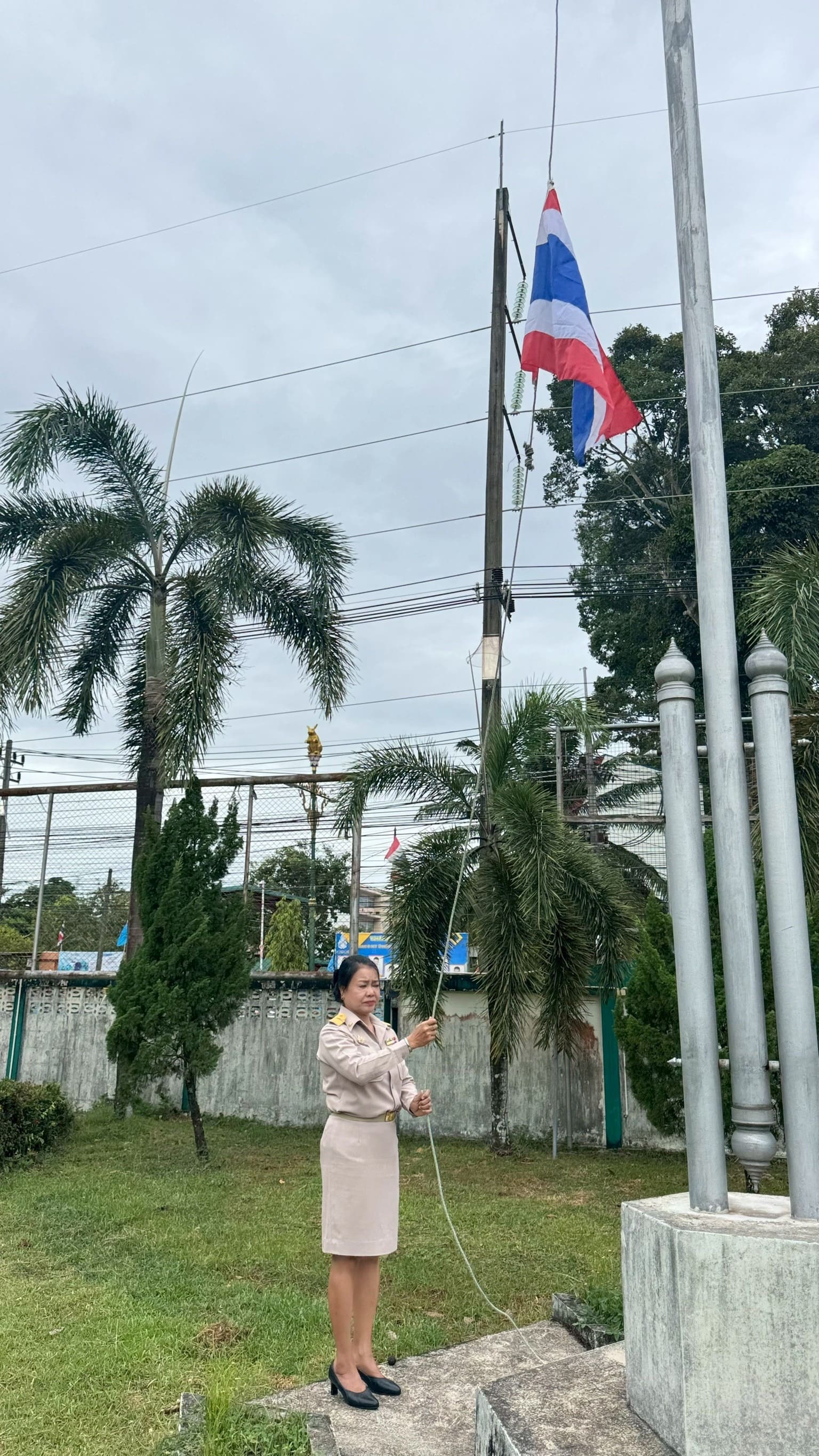 นายสัตวแพทย์ธนินณิวัฒน์ ทิพปภาสมิทธิ์ ปศุสัตว์จังหวัดนครศรีธรรมราช นำคณะ ข้าราชการ ปศุสัตว์อำเภอ และเจ้าหน้าที่สำนักงานปศุสัตว์จังหวัดนครศรีธรรมราช ร่วมกิจกรรมเคารพธงชาติและร้องเพลงชาติไทย เนื่องในวันพระราชทานธงชาติไทย โดยวันพระราชทานธงชาติไทยมีจุดเริ่มต้นจากพระราชกรณียกิจของ พระบาทสมเด็จพระมงกุฎเกล้าเจ้าอยู่หัว รัชกาลที่ 6 ที่ได้ทรงพระกรุณาโปรดเกล้าฯ แก้ไขพระราชบัญญัติธง พุทธศักราช 2460 กำหนดให้ธงไตรรงค์เป็นธงชาติไทย และนับตั้งแต่วันที่ 28 กันยายน พ.ศ. 2460 เป็นต้นมาธงไตรรงค์ได้เป็นสัญลักษณ์ประจำชาติไทยมาจนถึงปัจจุบัน ณ สำนักงานปศุสัตว์จังหวัดนครศรีธรรมราช