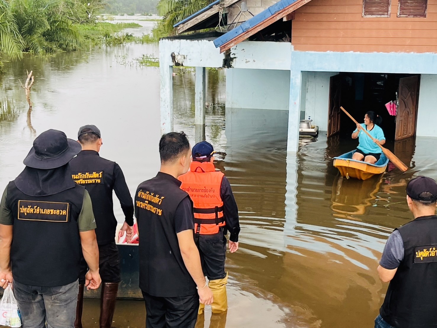 นายวิระชัย ชุมแก้ว นายอำเภอชะอวด พร้อมด้วยเจ้าหน้าที่สำนักงานปศุสัตว์อำเภอชะอวดและเจ้าหน้าที่ด่านกักกันสัตว์นครศรีธรรมราช ลงพื้นที่เยี่ยมเยียนเกษตรกร และมอบเวชภัณฑ์แก่เกษตรกรที่ได้รับผลกระทบจากน้ำท่วม ในพื้นที่ หมู่ 4 และ 7 ตำบลชะอวด อำเภอชะอวด จังหวัดนครศรีธรรมราช พร้อมทั้งได้ให้คำแนะนำการดูแลสุขภาพสัตว์ในช่วงน้ำท่วม
