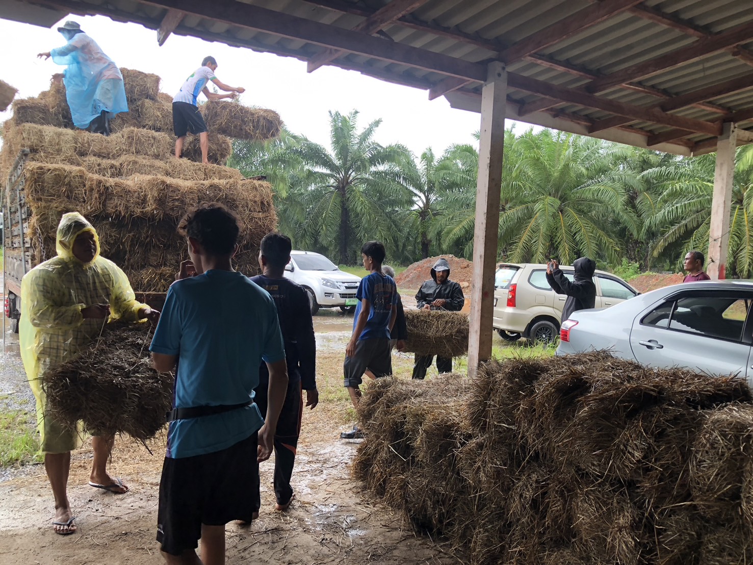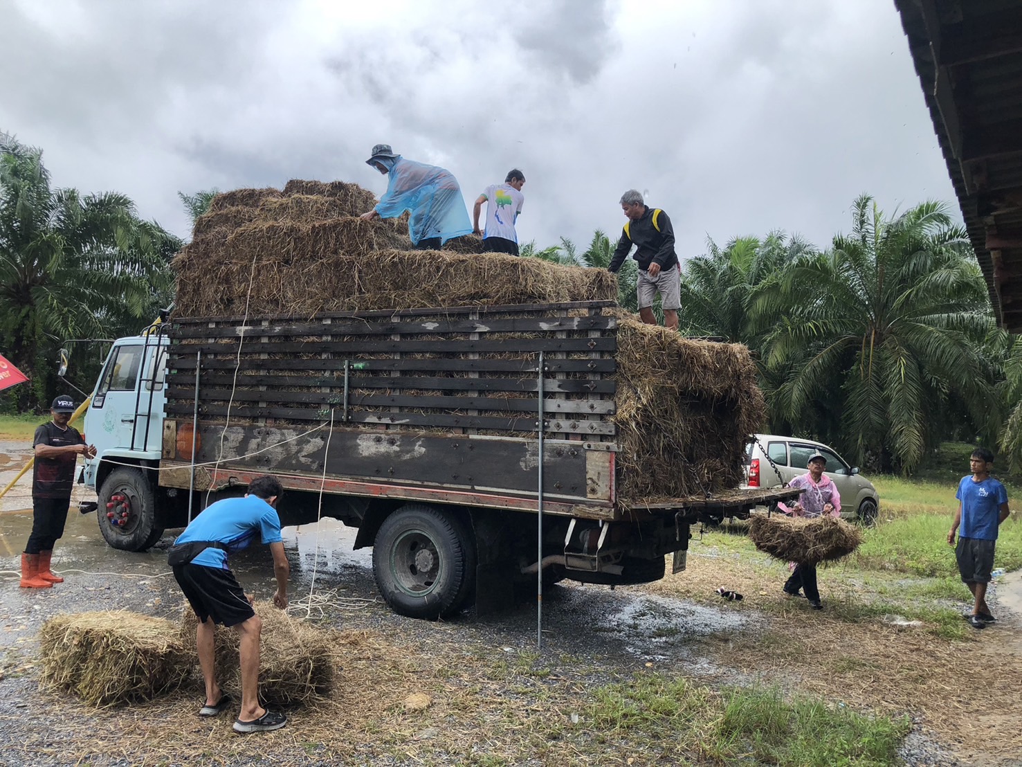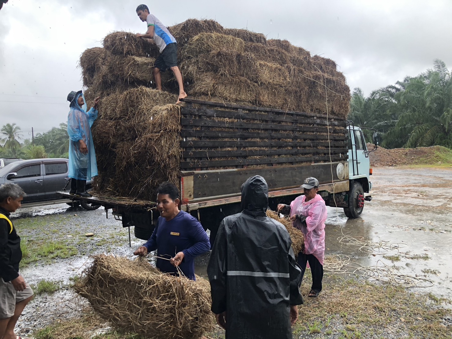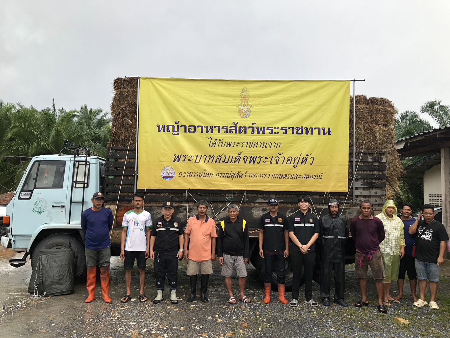 นางนวรัตน์ ศรีชูสุข นักวิชาการสัตวบาลชำนาญการพิเศษ รักษาราชการแทนปศุสัตว์จังหวัดนครศรีธรรมราช มอบหมายเจ้าหน้าที่กลุ่มยุทธศาสตร์,ร่วมกับศูนย์วิจัยและพัฒนาอาหารสัตว์นครศรีธรรมราช ส่งมอบหญ้าอาหารสัตว์พระราชทาน เพื่อช่วยเหลือเกษตรกรผู้เลี้ยงสัตว์ที่ได้รับผลกระทบจากอุทกภัย จำนวน 250 ฟ่อน (5,000 กก.) ณ หมู่ที่1 ตำบลบ้านใหม่ อำเภอปากพนัง จังหวัดนครศรีธรรมราช
