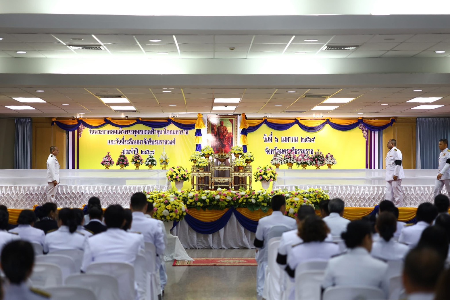 นายสัตวแพทย์เดชา จิตรภิรมย์ ปศุสัตว์จังหวัดนครศรีธรรมราช มอบหมายให้เจ้าหน้าที่กลุ่มยุทธศาสตร์และกลุ่มบริหารเข้าร่วมพิธีถวายเครื่องราชสักการะเบื้องหน้าพระบรมฉายาสาทิสลักษณ์พระบาทสมเด็จพระพุทธยอดฟ้าจุฬาโลกมหาราชปฐมกษัตริย์แห่งมหาจักรีบรมราชวงศ์โดยมี นายสมชาย ลีหล้าน้อย ผู้ว่าราชการจังหวัดนครศรีธรรมราชเป็นประธานในพิธีถวายเครื่องราชสักการะเบื้องหน้าพระบรมฉายาสาทิสลักษณ์ พระบาทสมเด็จพระพุทธยอดฟ้าจุฬาโลกมหาราช ปฐมกษัตริย์แห่งมหาจักรีบรมราชวงศ์ โดยมี ข้าราชการ ศาล ทหาร ตำรวจ พลเรือน และพสกนิกรทุกหมู่เหล่าร่วมพิธีอย่างพร้อมเพรียง ณ ศาลาประชาคมโรงละคร องค์การบริหารส่วนจังหวัดนครศรีธรรมราช อำเภอเมือง จังหวัดนครศรีธรรมราช