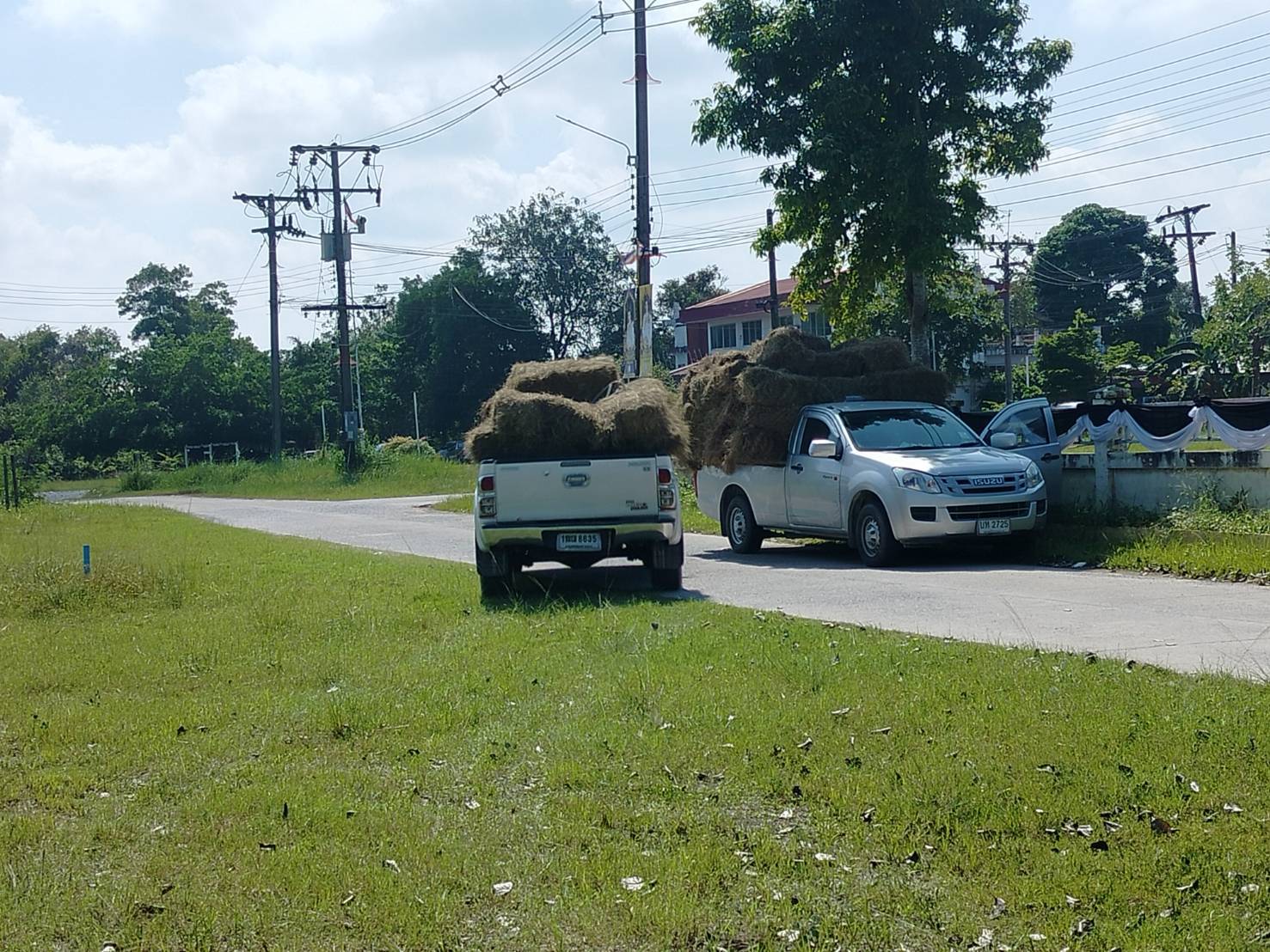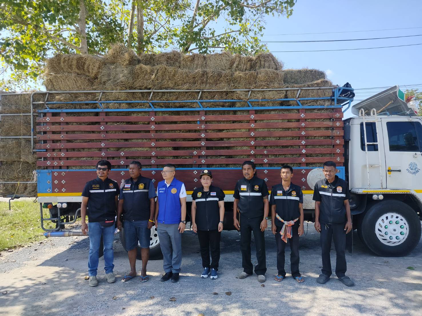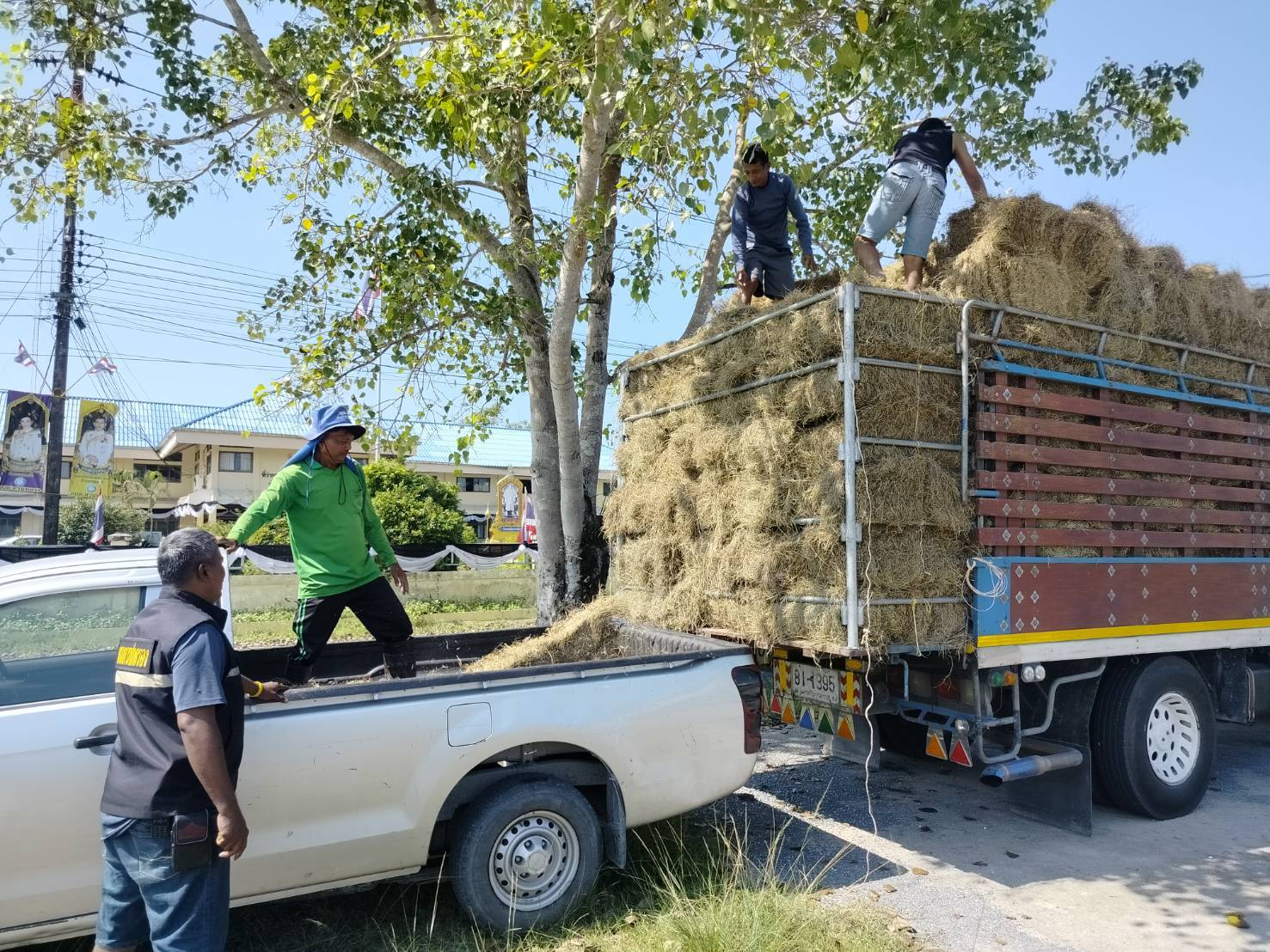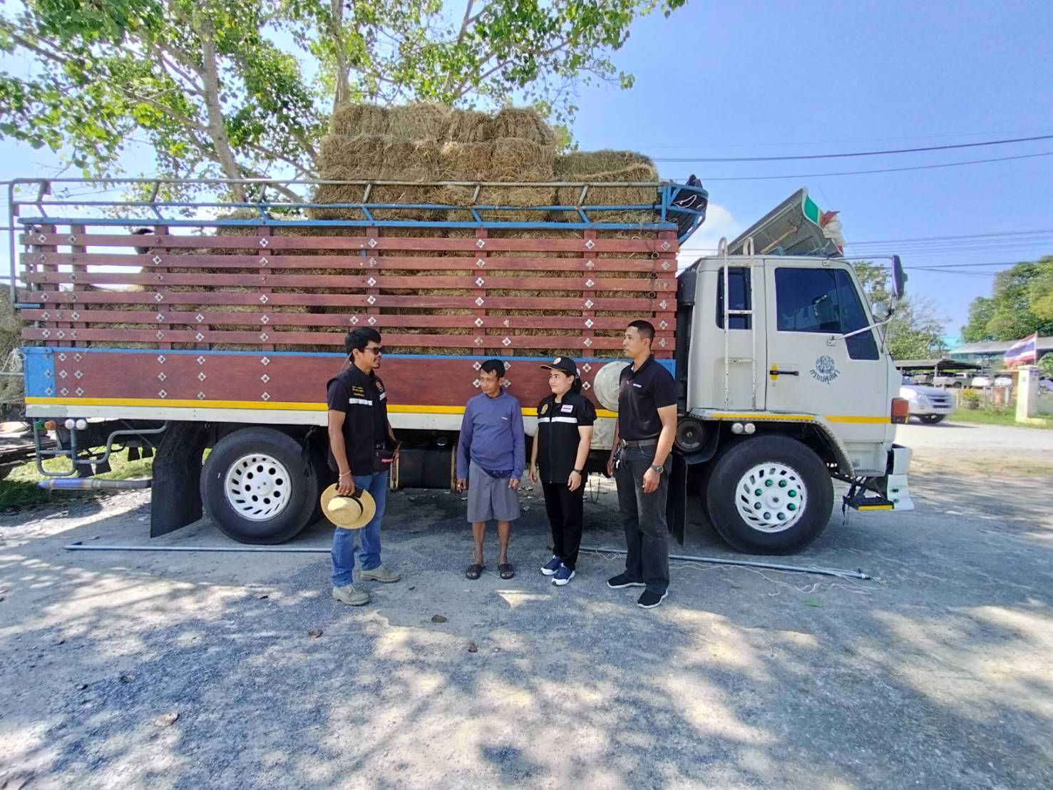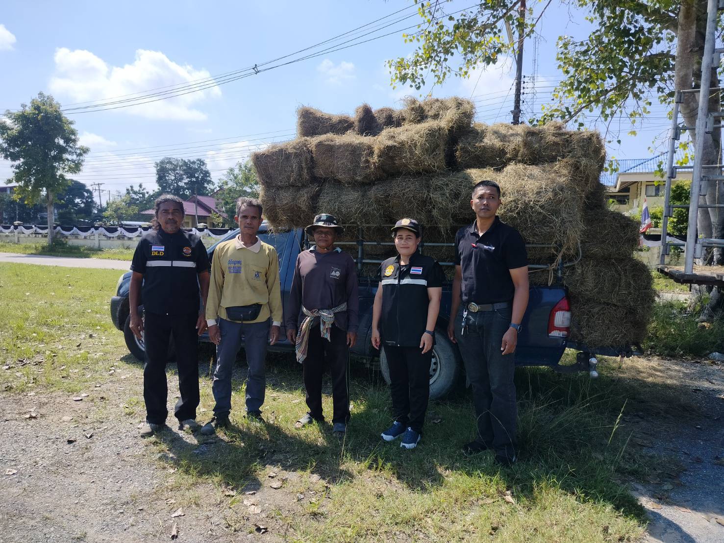 เจ้าหน้าที่สำนักงานปศุสัตว์อำเภอเฉลิมพระเกียรติ ร่วมกับ เจ้าหน้าที่ศูนย์วิจัยและพัฒนาอาหารสัตว์นครศรีธรรมราช ส่งมอบหญ้าอาหารสัตว์พระราชทาน ให้แก่เกษตรกรผู้เลี้ยงโคที่ได้รับผลกระทบจากอุทกภัย ในพื้นที่ หมู่ที่ 6, 7, 10 และ 12 ตำบลสวนหลวง อำเภอเฉลิมพระเกียรติ จังหวัดนครศรีธรรมราช จำนวน 250 ฟ่อน