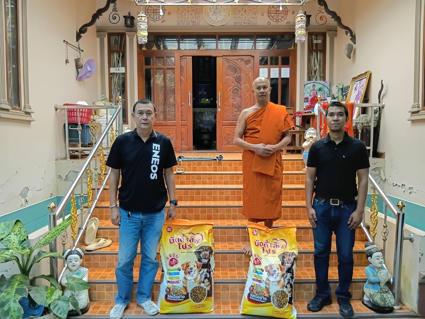 เจ้าหน้าที่สำนักงานปศุสัตว์อำเภอพระพรหม ทำการมอบอาหารสัตว์พระราชทานให้แก่เกษตรกรที่ได้รับผลกระทบจากภาวะอุทกภัย ในพื้นที่อำเภอพระพรหม จังหวัดนครศรีธรรมราช พร้อมให้คำแนะนำการดูแลสุขภาพสัตว์ ป้องกันโรคสัตว์อันอาจจะเกิดขึ้นภายหลังภาวะฝนตกหนักและอุทกภัยในห้วงที่ผ่านมา