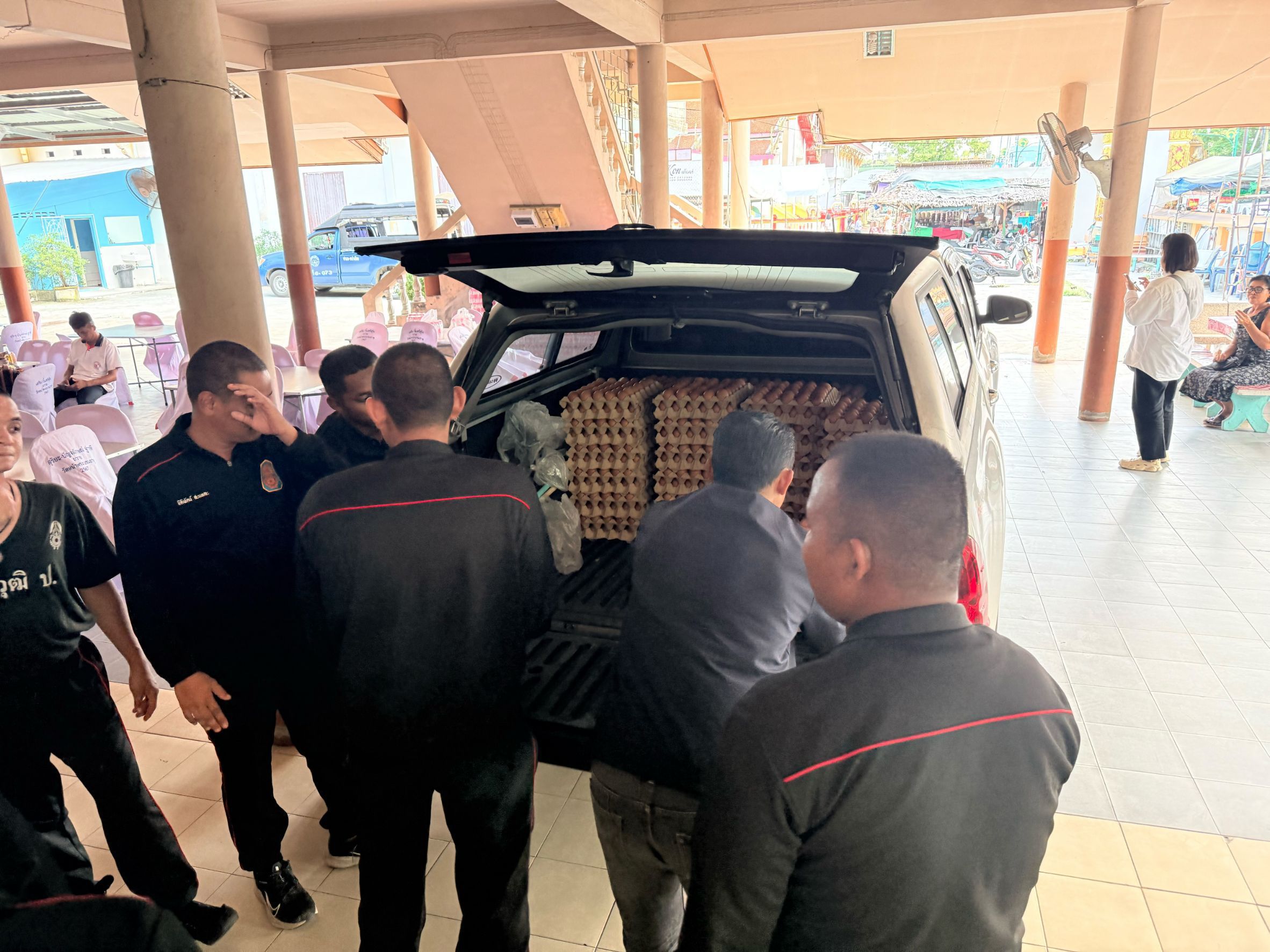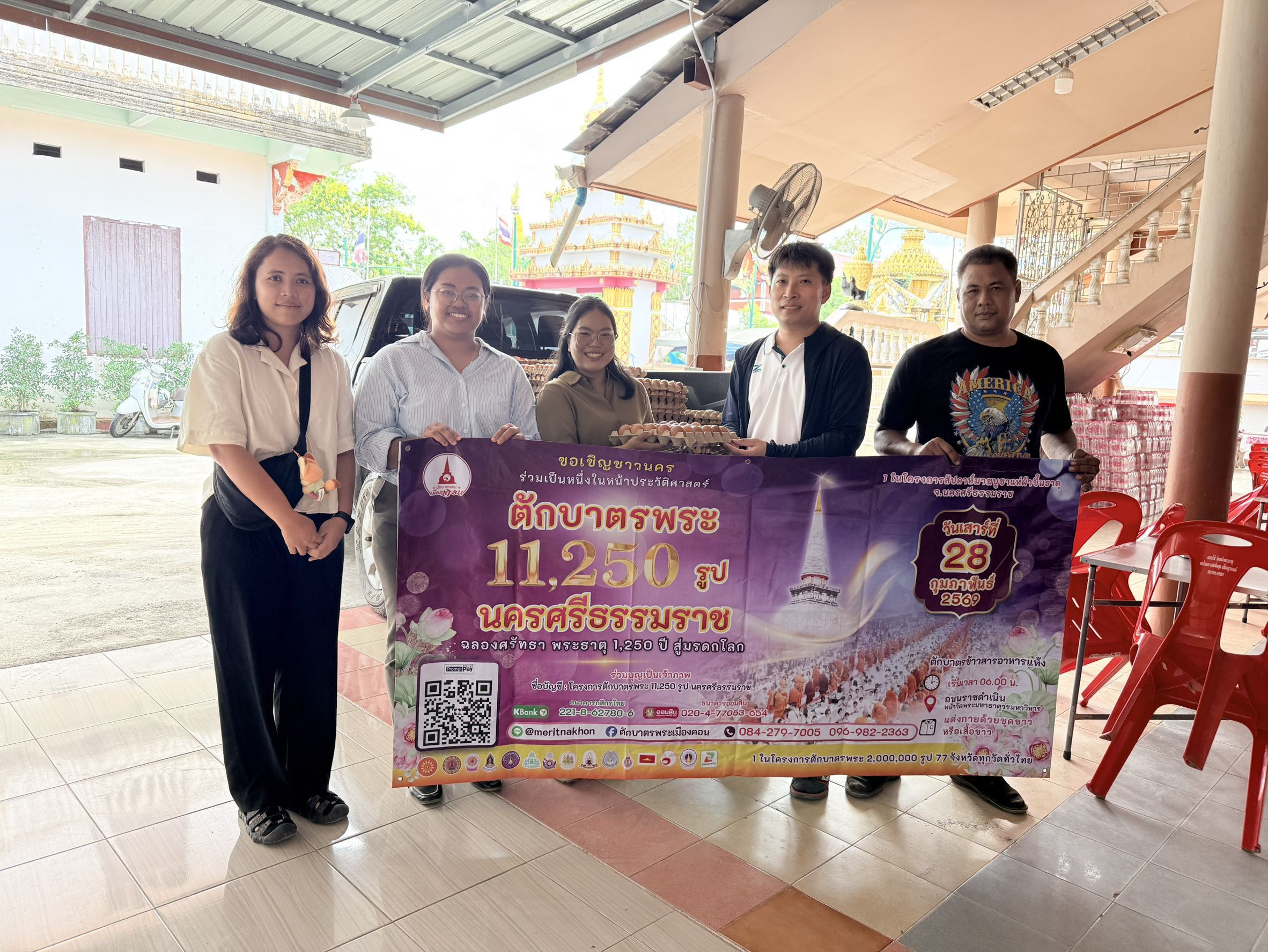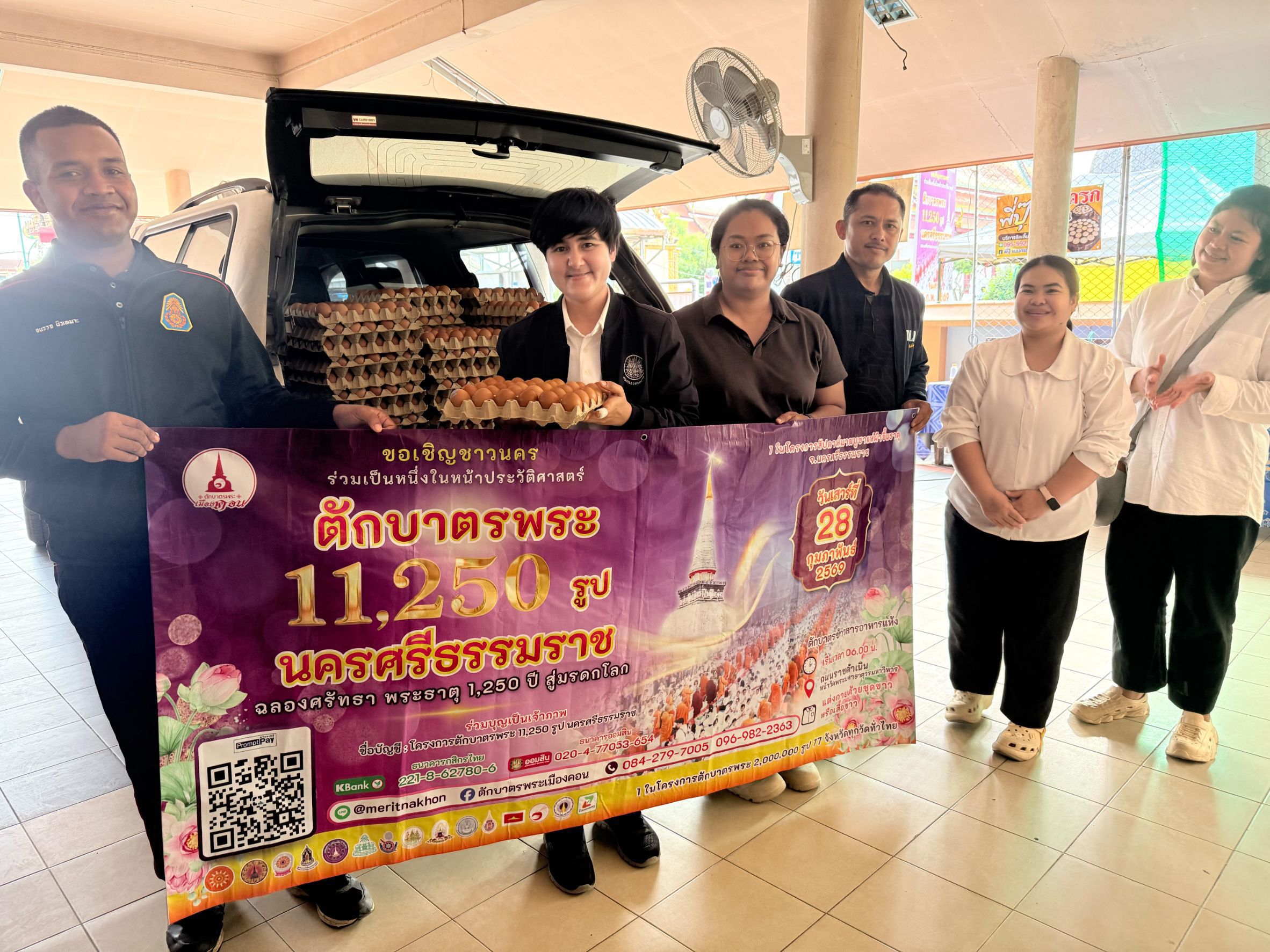 เจ้าหน้าที่สำนักงานปศุสัตว์จังหวัดนครศรีธรรมราช เจ้าหน้าที่ปศุสัตว์อำเภอ ร่วมเป็นสะพานบุญส่งมอบไข่ไก่สดจากผู้ประกอบการฟาร์มไก่ไข่ GAP เพื่อใช้ประกอบอาหารถวายแด่พระภิกษุสงฆ์ จำนวน 9,600 ฟอง