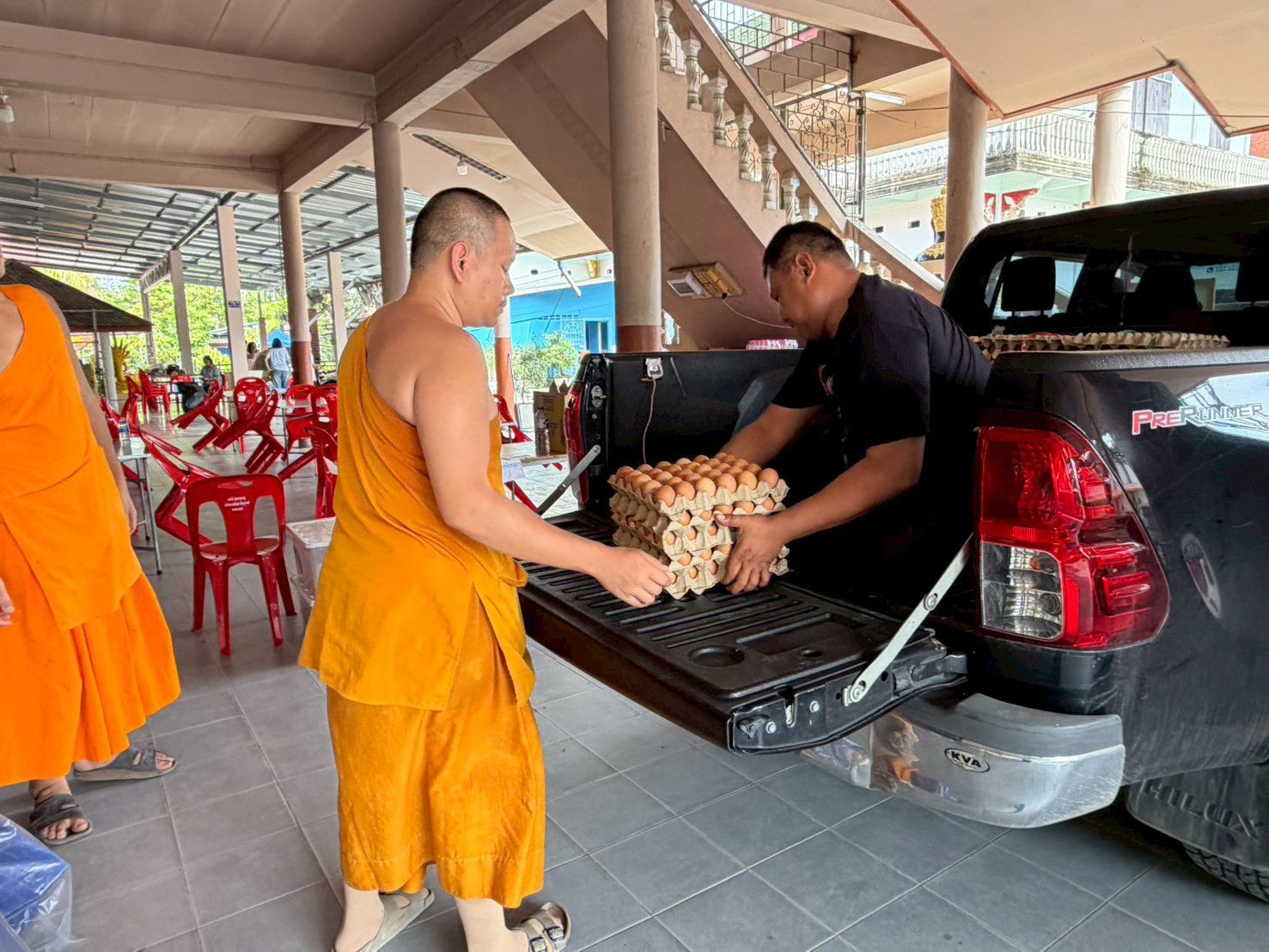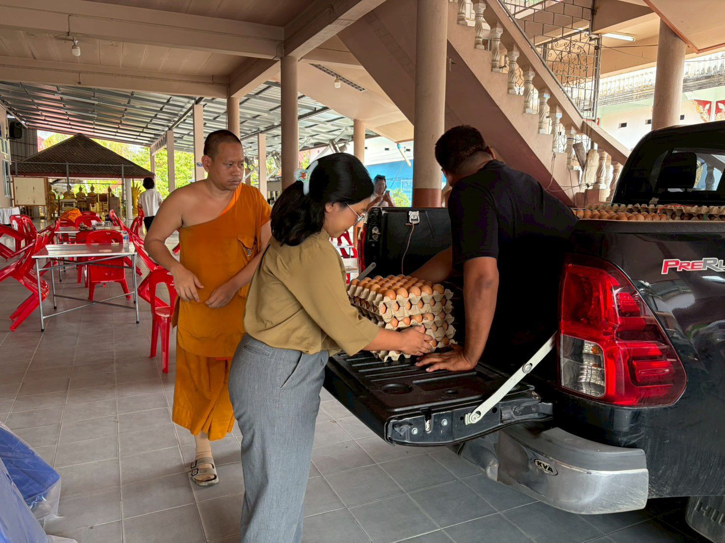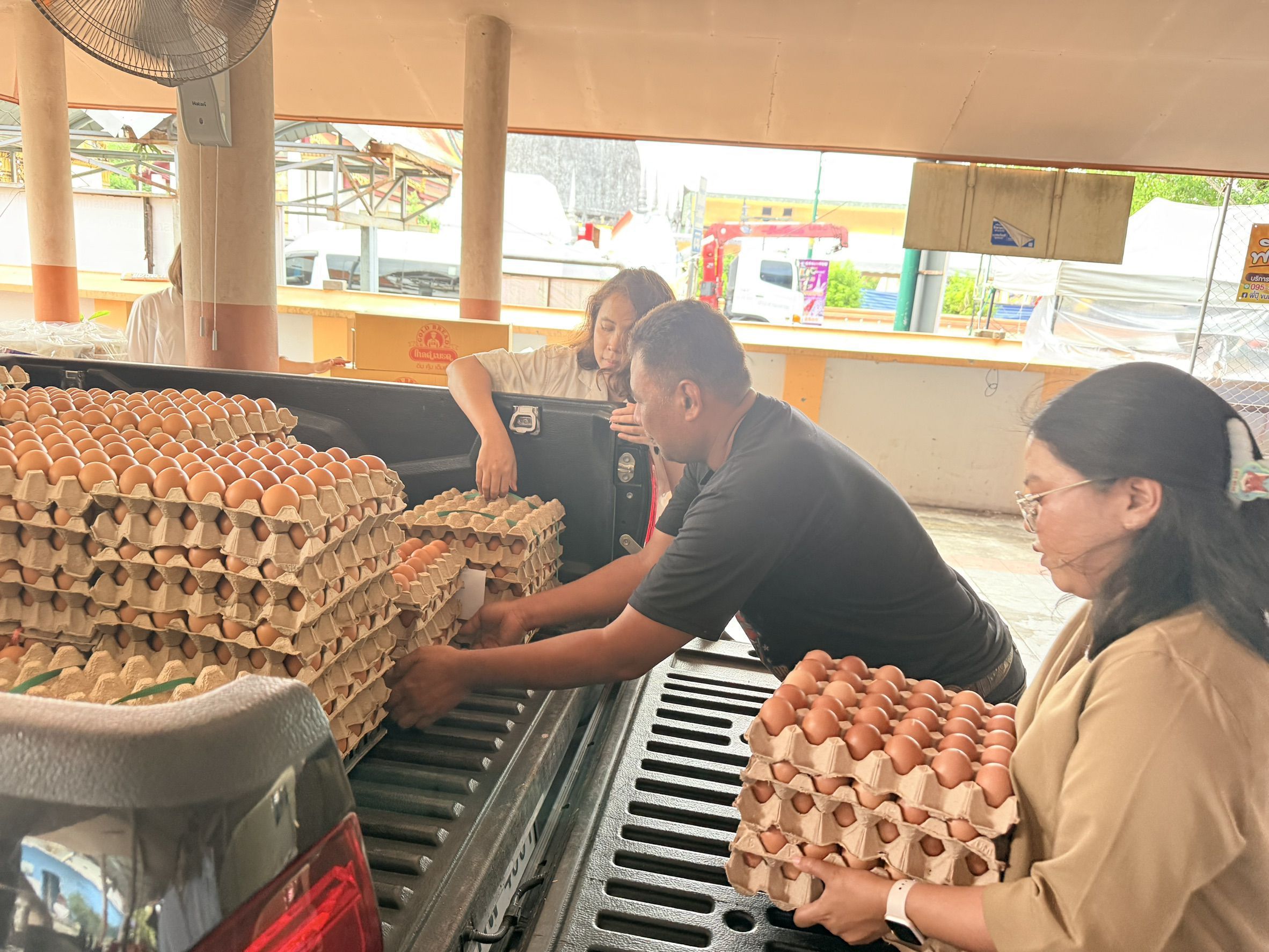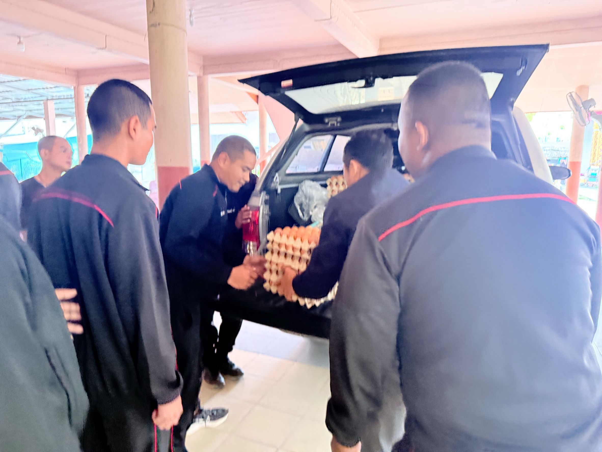 เจ้าหน้าที่สำนักงานปศุสัตว์จังหวัดนครศรีธรรมราช เจ้าหน้าที่ปศุสัตว์อำเภอ ร่วมเป็นสะพานบุญส่งมอบไข่ไก่สดจากผู้ประกอบการฟาร์มไก่ไข่ GAP เพื่อใช้ประกอบอาหารถวายแด่พระภิกษุสงฆ์ จำนวน 9,600 ฟอง