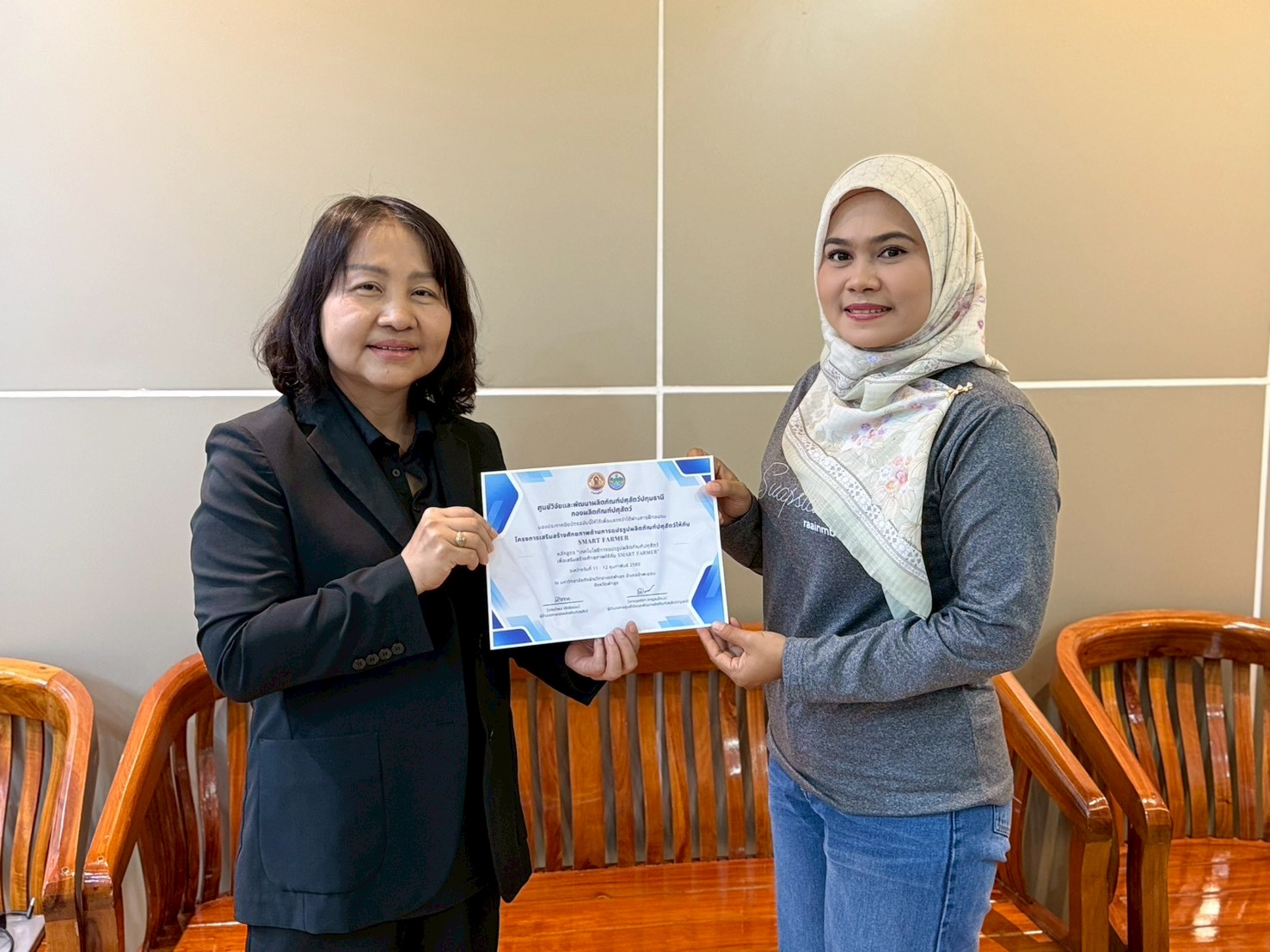 วันที่ 11-12 กุมภาพันธ์ 2569 สำนักงานปศุสัตว์จังหวัดพังงา โดยเจ้าหน้าที่กลุ่มส่งเสริมและพัฒนาการปศุสัตว์และเจ้าหน้าที่สำนักงานปศุสัตว์อำเภอตะกั่วทุ่ง เข้าร่วมการฝึกอบรมโครงการเสริมสร้างศักยภาพด้านการแปรรูปผลิตภัณฑ์ปศุสัตว์ให้กับ Smart Farmer หลักสูตร เทคโนโลยีการแปรรูปผลิตภัณฑ์ปศุสัตว์เพื่อเสริมสร้างศักยภาพ ณ ตึกคณะอุตสาหกรรมเกษตรและชีวภาพ มหาวิทยาลัยทักษิณวิทยาเขตพัทลุง อำเภอป่าพะยอม จังหวัดพัทลุง โดยศูนย์วิจัยและพัฒนาผลิตภัณฑ์ปศุสัตว์ปทุมธานี เป็นวิทยากรและให้ความรู้