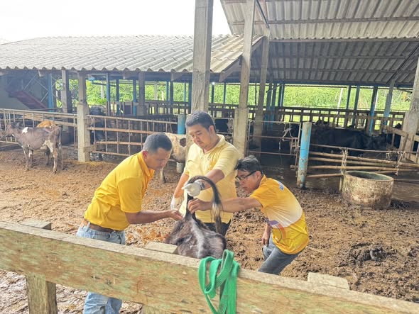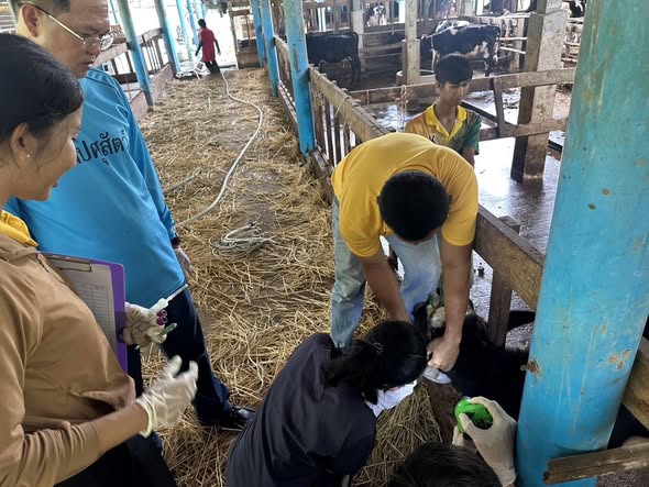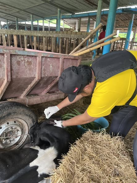 วันที่ 20 ตุลาคม 2568 เวลา 09.00 น. ว่าที่ ร.ต.มณฑล เลาหภักดี ปศุสัตว์จังหวัดพัทลุง มอบหมายให้ เจ้าหน้าที่กลุ่มสุขภาพสัตว์ สำนักงานปศุสัตว์จังหวัดพัทลุง และสำนักงานปศุสัตว์อำเภอเมืองพัทลุง ร่วมกับเจ้าหน้าที่จากสหกรณ์โคนมพัทลุง จำกัด เข้าดูแลติดตามอาการสัตว์ป่วยในฟาร์มโคนมและเจาะเลือดเพื่อเก็บตัวอย่าง ณ ฟาร์มนายเริงชัย บัวเนียม หมู่ที่9 ตำบลท่าแค อำเภอเมืองจังหวัดพัทลุง