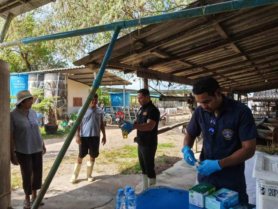 วันที่ 7 มกราคม 2569 นายสัตวแพทย์สุกิจ ประทุมชัย ปศุสัตว์จังหวัดระนอง มอบหมายให้เจ้าหน้าที่กลุ่มพัฒนาคุณภาพสินค้าปศุสัตว์ สำนักงานปศุสัตว์จังหวัดระนอง ลงพื้นที่เก็บตัวอย่างปัสสาวะโคส่งตรวจทางห้องปฏิบัติการ เพื่อตรวจรับรองฟาร์มปลอดสารเร่งเนื้อแดง/เบต้าอะโกนิสท์ (B-Agonist) ตามโครงการฟาร์มปลอดสารเร่งเนื้อแดง ณ ปิยะฟาร์ม ตำบลบางริ้น อำเภอเมืองระนอง จังหวัดระนอง
