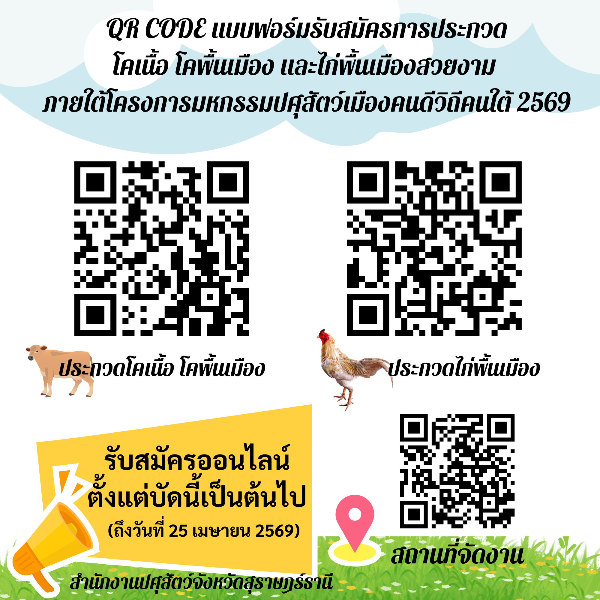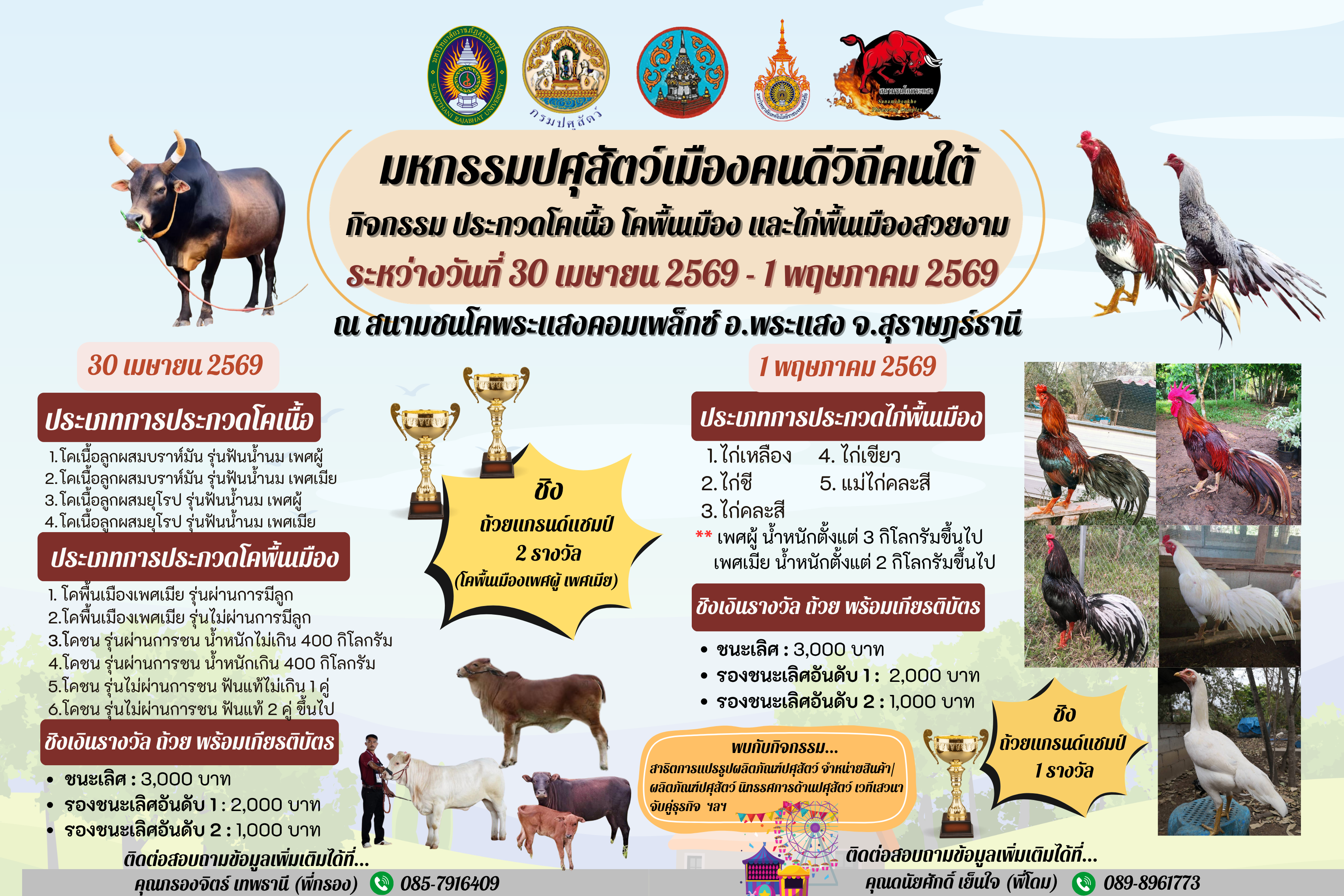 ประชาสัมพันธ์ "งานประกวดโคเนื้อ โคพื้นเมือง และไก่พื้นเมืองสวยงาม"