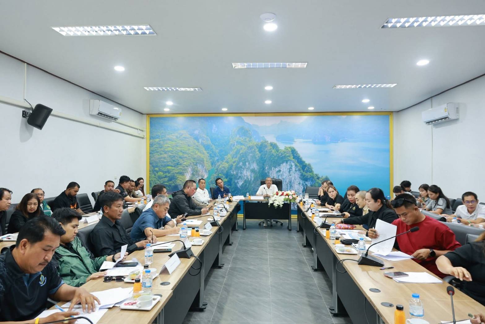 นายสมพล ไวปัญญา ปศุสัตว์จังหวัดสุราษฎร์ธานี พร้อมด้วย นายคมชาย ศรีชาลี หัวหน้ากลุ่มพัฒนาสุขภาพสัตว์ นายดนัยศักดิ์ เย็นใจ หัวหน้ากลุ่มส่งเสริมและพัฒนาการปศุสัตว์ และนางสาวมนัญญา สนแดง นายสัตวแพทย์ชำนาญการ กลุ่มยุทธศาสตร์ฯ เข้าร่วมประชุมติดตามโครงการจัดงานฤดูกาลดนตรีท่ามกลางขุนเขา (Music Mountain View Season) ครั้งที่ 3 เพื่อติดตามความก้าวหน้า ปัญหา และอุปสรรคในการดำเนินงานของแต่ละกิจกรรม ทั้งนี้ เพื่อให้การจัดงานเป็นไปด้วยความเรียบร้อย โดยมี ดร.ธนาคม รื่นพานิช รองนายกองค์การบริหารส่วนจังหวัดสุราษฎร์ธานี เป็นประธาน ณ ห้องประชุมเทศบาลตำบลบ้านเชี่ยวหลาน อำเภอบ้านตาขุน จ.สุราษฎร์ธานี